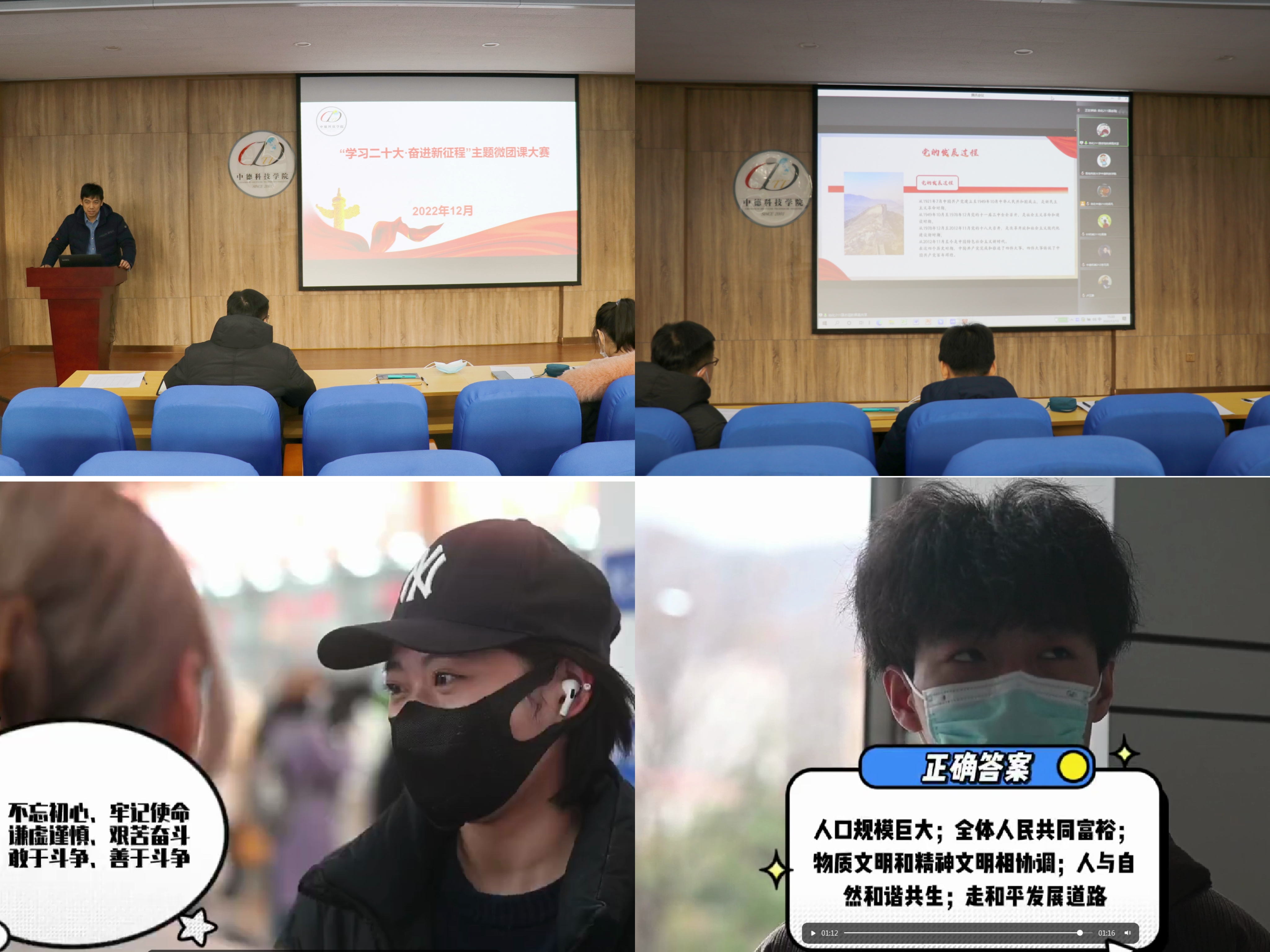 创新形式,走深走实。12月13日,公司团委组织开展团支部书记讲团课复赛,充分发挥团支部书记的“领头雁”作用,引导团支部书记先学一步、深学一层,在学中赛,赛中学,充分担当凝聚团员青年坚定不移听党话、跟党走思想共识的责任,在广大青年中激发怀抱梦想、脚踏实地的青春力量。开展党的二十大精神知识竞赛活动,内容涵盖党的二十大报告中的新目标、新举措,中国共产党章程,时事政治等多个方面,进一步引导团员青年领会精神实质,汲取开拓前进的强大勇气和力量。创造喜闻乐见的新形式,使党的二十大精神以“快问快答”的形式展现在同学们中间,带动广老员工积极性,促进全面学习、全面把握、全面落实,不断扩大党的二十大学习的深度和广度。