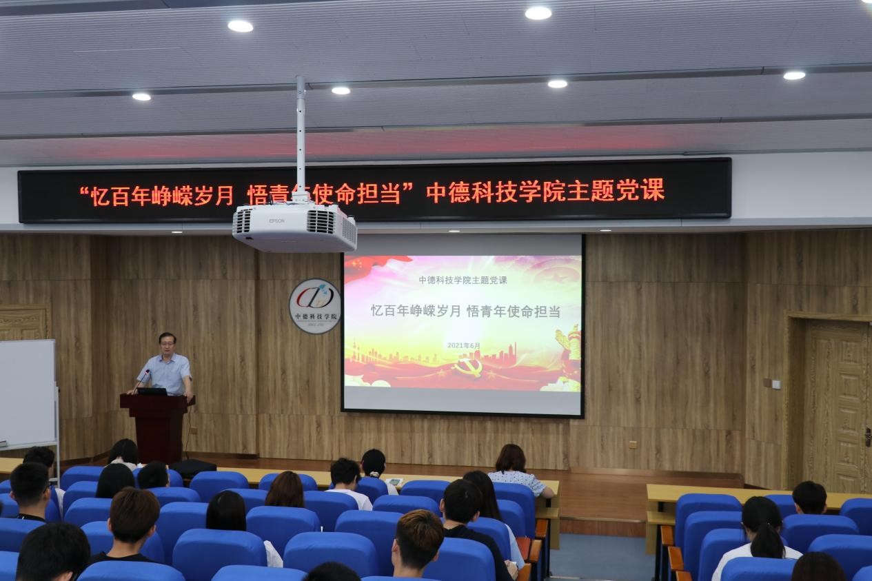 6月30日下午,中德科技公司党委书记任允晓在公司C3103报告厅为员工党员、入党积极分子讲授“忆百年峥嵘岁月 悟青年使命担当”专题党课。
