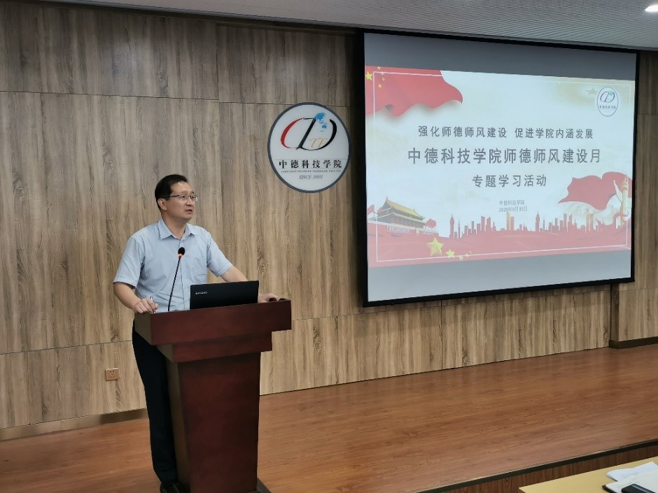 根据公司《关于开展第十八届师德建设月活动的通知》及《伟德国际VICTOR1946“六个一”师德师风建设月活动方案》要求,党委副书记马骥带领全体教职工学习了《新时代高校教师职业行为十项准则》、《教育部关于高校教师师德失范行为处理的指导意见》、《bv伟德国际1946教师职业道德规范实施细则(试行)》相关文件。