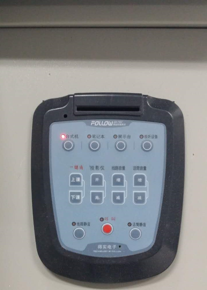 1、若按下“上课键”3秒钟无任何反应,请检查控制面板上是否有灯在闪烁,如果没有即是本教室无电,请联系管理室;若闪烁,请长按“投影开”即可。
