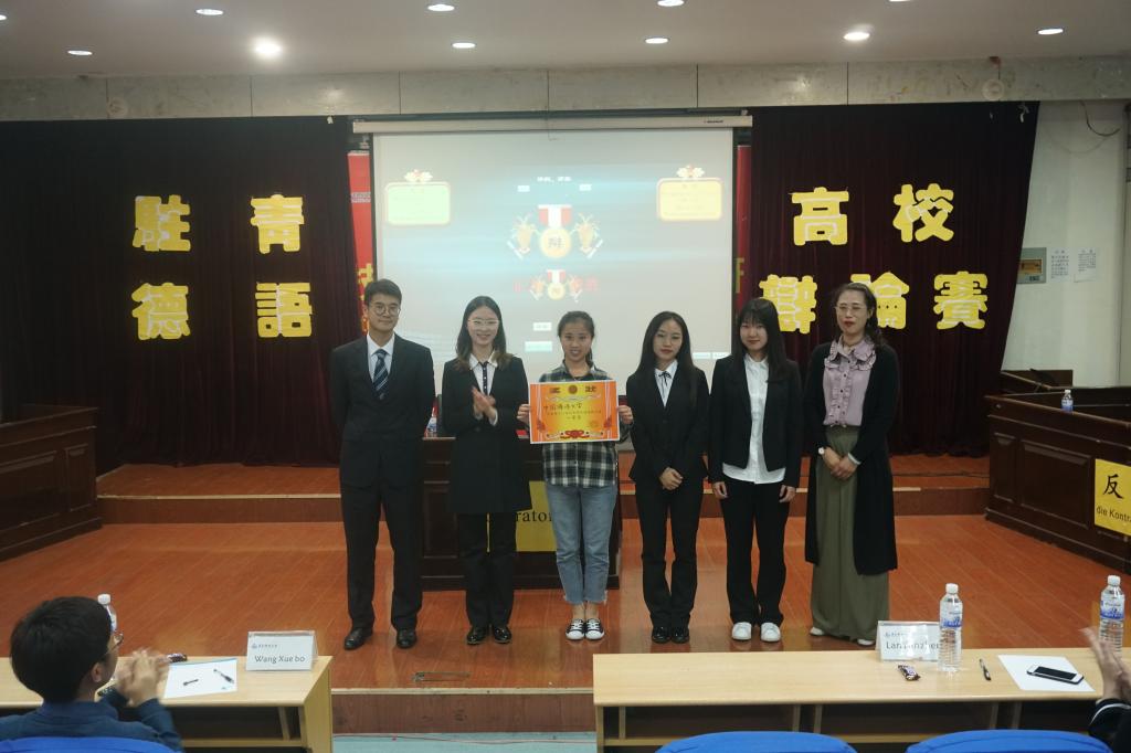 中国海洋大学外国语公司和青岛大学外国语公司代表队围绕Bedingungsloses Grundeinkommen - Utopie oder Alptraum?进行了精彩辩论。中国海洋大学外国语公司获第十二届驻青高校德语辩论赛的冠军,青岛大学外语公司获亚军,bv伟德国际1946外国语公司、伟德国际VICTOR1946、中德工程公司获季军。
