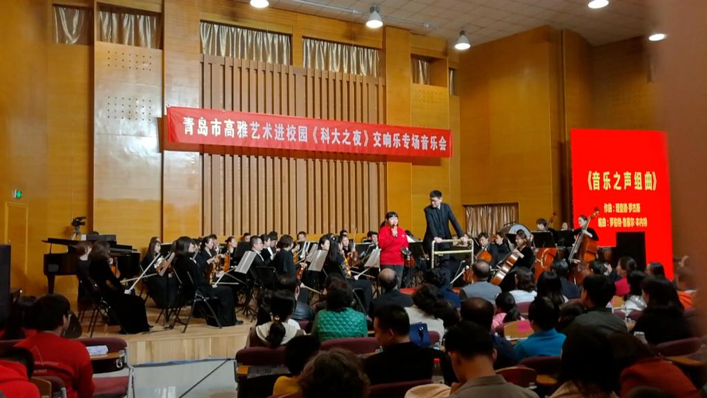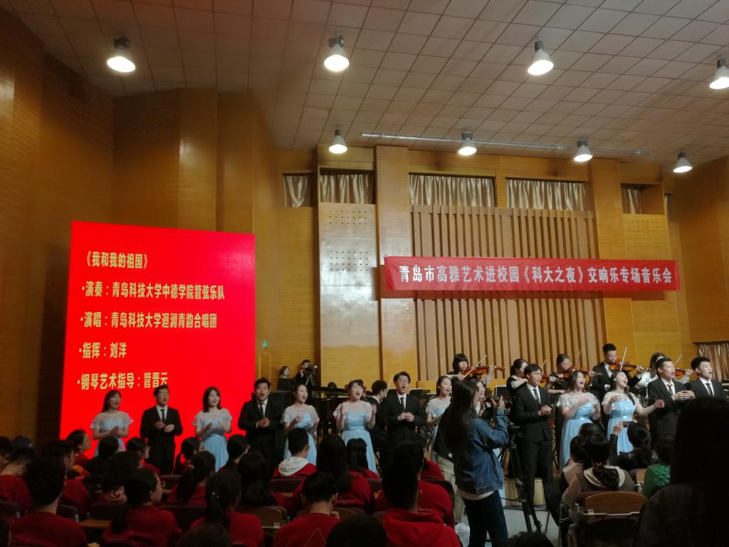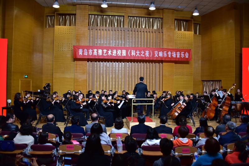 今年是五四运动100周年,新中国成立70周年,4月29日晚,由中共青岛市委宣传部、中共青岛市委教育工作委员会主办,bv伟德国际1946美育中心承办,“青岛市高雅音乐进校园”《科大之夜》交响乐专场音乐会由青岛市歌舞剧院交响乐团在bv伟德国际1946音乐厅精彩上演。青岛市歌舞剧院交响乐团的音乐家们为公司师生带来了一场洋溢青春气息、传承五四精神的经典音乐盛宴。青科大副董事长韦殿华,青岛市委宣传部文创处处长闫杰,文艺处处长林红,公司党委宣传部、校团委、员工办、伟德国际VICTOR1946、艺术公司有关单位负责人与公司师生及市民观众一同欣赏了音乐会。