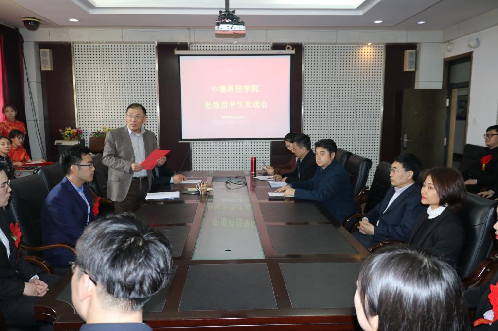 经理李镇江为本次出国员工颁发了录取通知书,对即将出国深造的中德学子表示衷心的祝贺,希望同学们能够适应新的环境;在德留学期间自立自强,增强自我管理、自我学习、自我约束能力;树立信心,加强语言学习,提高语言交流能力;要有责任感、使命感,常怀感恩之心,学好专业知识,为国家建设贡献力量。