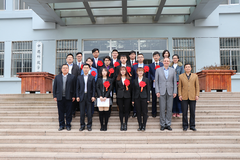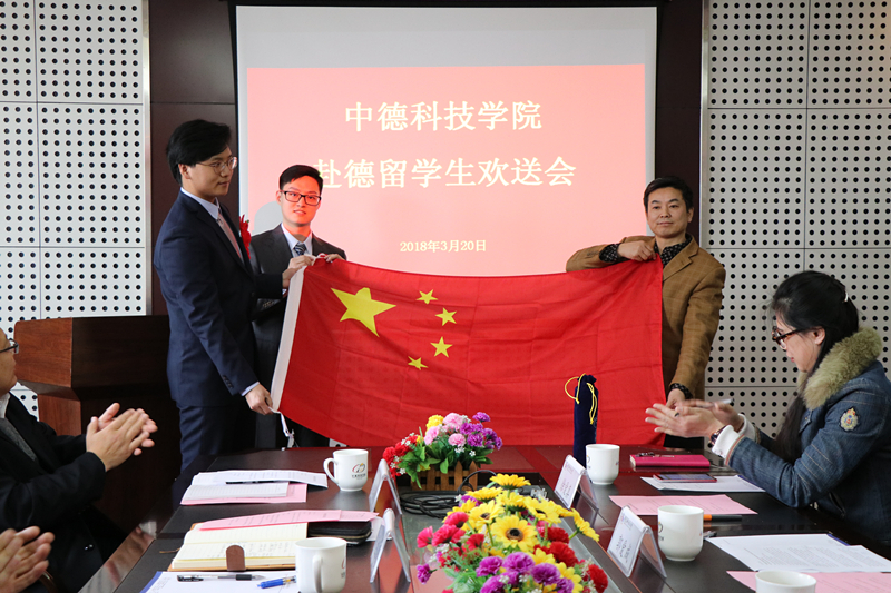 经理李镇江为本次出国员工颁发了录取通知书,对即将出国深造的中德学子表示衷心的祝贺。副经理薄建全接受员工代表捐赠的“思源书库”图书,希望同学们能够适应新的环境;当好文化使者,做一个有责任感有担当的人,为祖国争光添彩。
