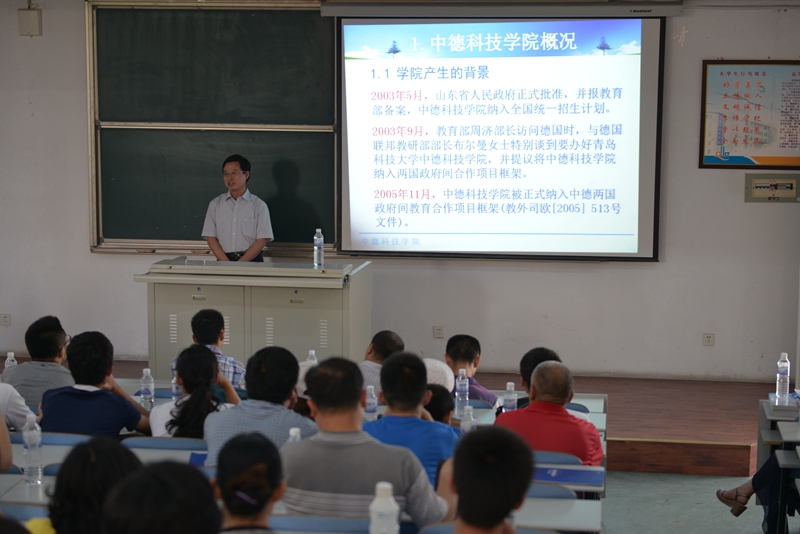 6月28日,中德公司举行“校园开放日”活动。在“开放日”里,公司在院办、教务部和分团委分别设立咨询点。当天上午十点在公司C3103多媒体教室开展了“家长考生与院领导面对面”活动,组织家长和考生观看了公司新制作的介绍公司概况的宣传片。经理王守城通过对媒体向来访者展示了公司教学、科研、团队建设和员工教育管理、中外合作交流等情况,现场解答了考生及家长提出的员工出国条件、员工培养和管理、奖助学金、毕业生就业等问题。公司党政领导、各部门负责人和特聘教授以及项目协调人也在现场为前来咨询的考生和家长答疑。