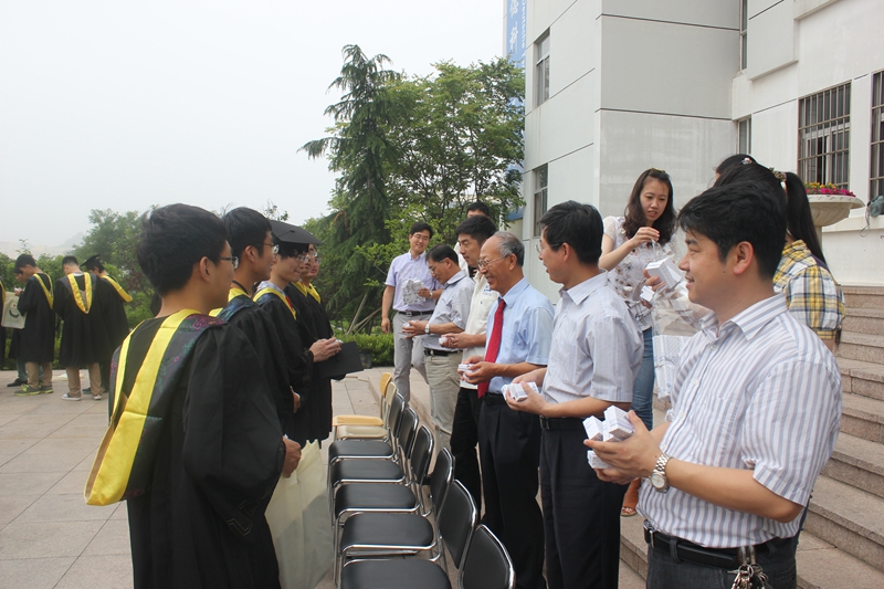 6月25日,中德公司在公司楼前举行了“缘聚中德,青春扬帆”毕业生留念活动,公司党政领导、分团委老师、教师代表参加了活动。经理王守城对毕业生提出了殷切的期望,希望毕业生在未来的道路上要自强不息,勤劳勇敢,在未来的道路上要不断开拓创新,取得更大成绩。然后,公司老师王守城、李镇江、徐立勋、常德功、刘中冬、杨子江为毕业生赠送了优盘和纪念戒指毕业生纪念品,并与全体毕业生合影留念。毕业纪念品组合体现了实用性与纪念意义的完美结合,既凸显了公司对毕业生未来的美好祝愿,也包含着公司对毕业生的浓浓情意。