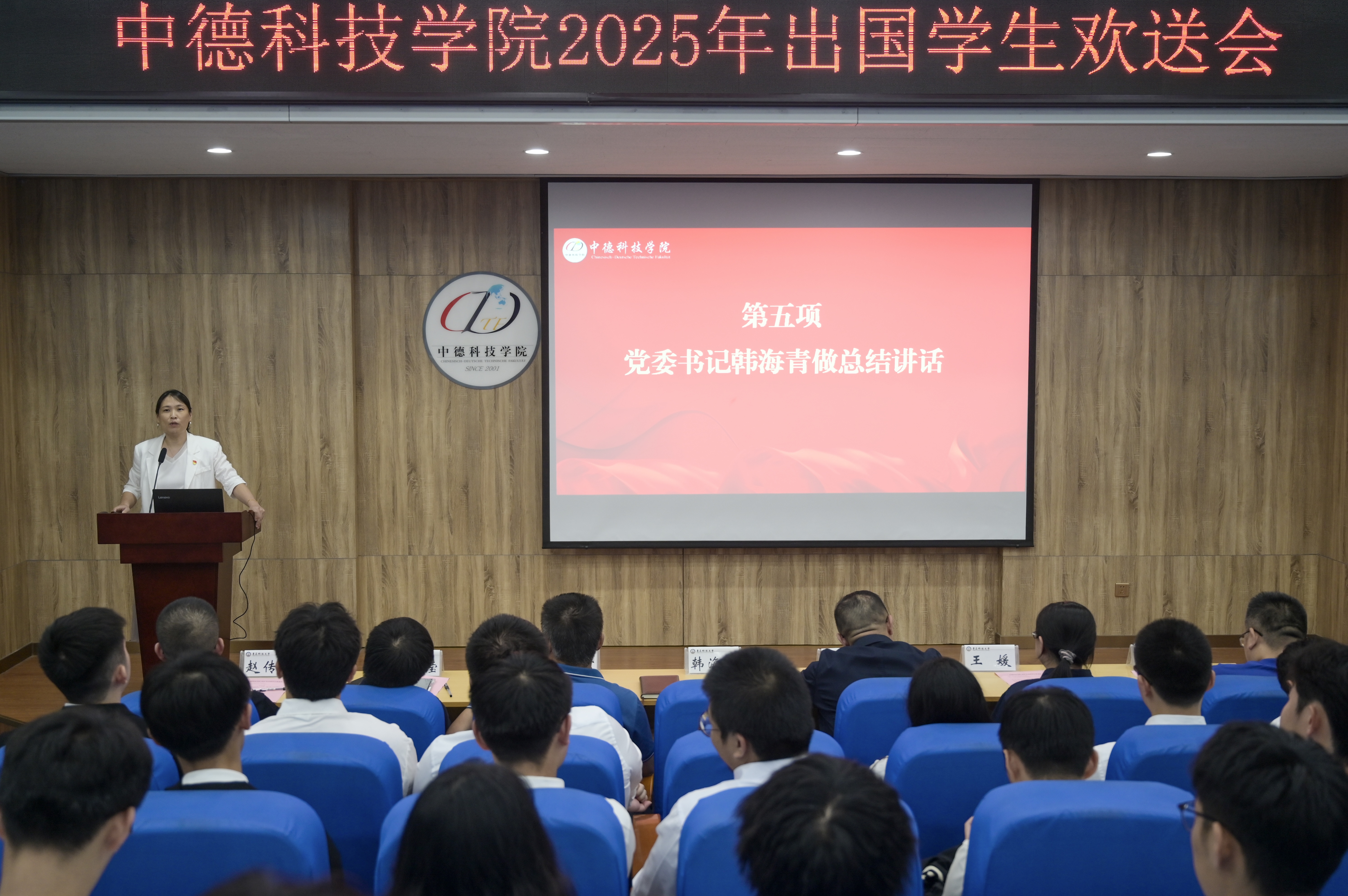 党委书记韩海青代表公司向即将赴德深造的同学们致以热烈祝贺,并提出四点要求:一是要心怀家国、勇担使命;二是要勤学笃行、追求卓越;三是要开放包容、善于交流;四要是自律自强、平安健康。她寄语学子,希望同学们在国外努力学习,心怀家国,早日学成归来,为中华民族伟大复兴贡献青春力量。