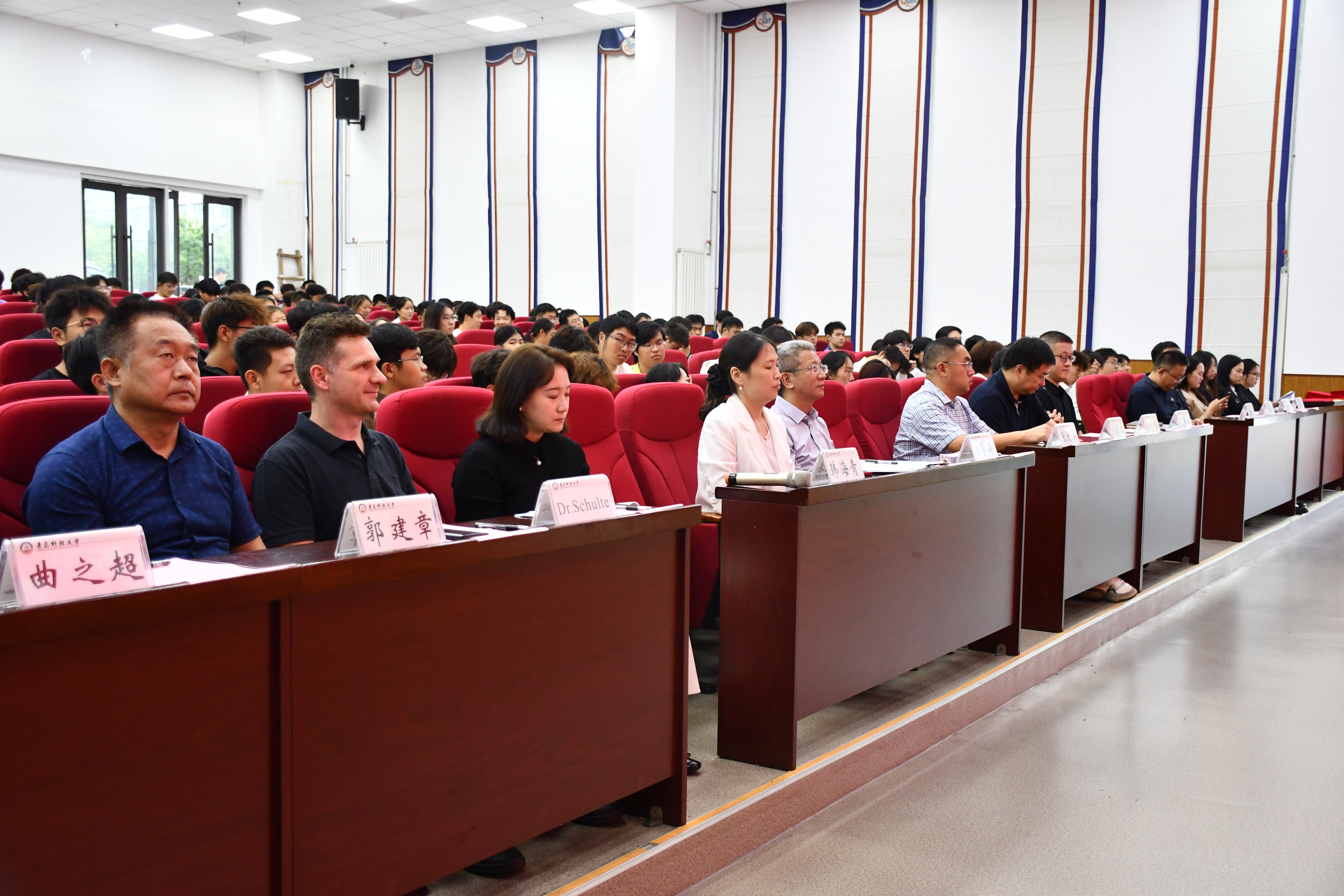 9月23日下午,伟德国际VICTOR19462025级新生开学典礼暨德语等级考试成绩优异员工表彰仪式在崂山校区北苑团学报告厅举行。公司党政领导班子成员、德国锡根大学代表、教师代表以及2025级全体新生参加开学典礼。