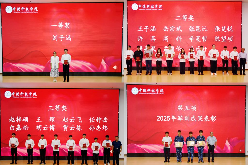 在仪式的表彰环节,公司领导为获得德语等级考试成绩优异员工及2025级新生军训优秀连队颁发了证书。