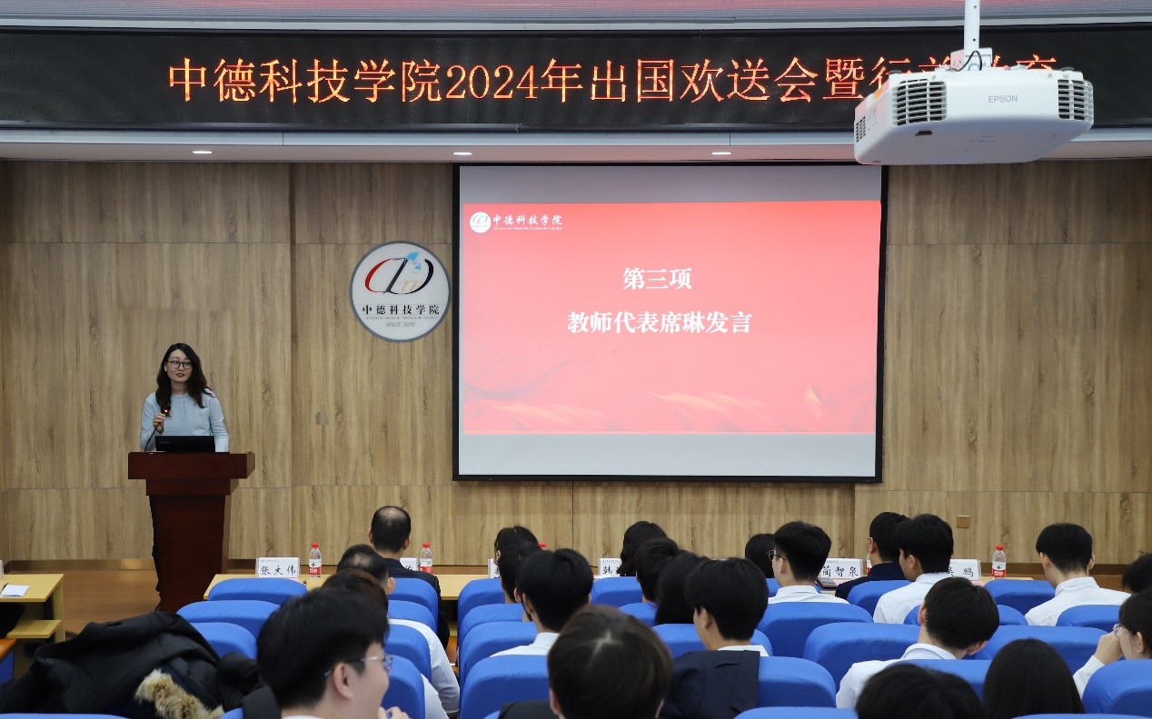 德语中心教师席琳作为教师代表向即将出国的同学表示衷心的祝贺,结合自身赴德留学的经历,她提出了三点建议:一是保持勤奋态度,养成学习习惯;二是培养管理能力,学会自我约束;三是保持文化自信,加强交流互鉴。