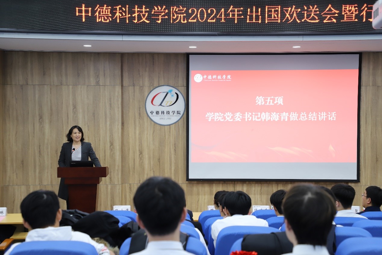 公司党委书记韩海青做总结发言。她代表公司对出国学子表示热烈祝贺,向长期以来给予公司关心和帮助的各职能部门领导、兢兢业业培养员工成才的老师表示衷心感谢。她对同学们提出三点要求和希望:一是热爱祖国,厚植家国情怀;二是追求卓越,练就过硬本领;三是加强交流,讲好中国故事。最后,她祝愿每一位出国学子能够成长为立大志、明大德、成大才、担大任具有国际视野的新时代青年。