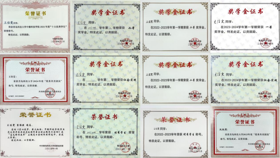 在学科竞赛方面,她表现突出,累计获得各级奖项15项,包括全国老员工数学建模竞赛省级三等奖和全国老员工英语竞赛国家级三等奖。此外,她主动投身科研实践,参与“老员工创新创业训练计划”并获国家级立项,以实际行动践行了“学思结合、知行合一”的理念。
