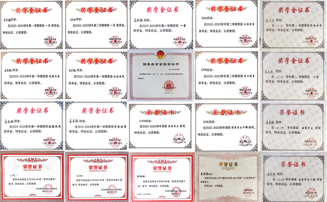 “吾生也有涯,而知也无涯”。姜英翰始终保持着勤奋刻苦的学习态度,不断精进自身专业知识,所修26门专业课均位于90分以上,其中5门专业课达到满分。他连续三年学业成绩和综合测评成绩位列专业第一,累计获得各类荣誉30余项。
