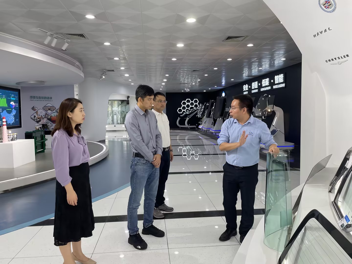 座谈会结束后,一行人到福耀集团党建活动中心参观,感受福耀“透明党建”品牌建设;参观福耀汽车铝件工厂,了解一线生产流程和管理模式,与新入职2023届员工张在攀进行了交流。