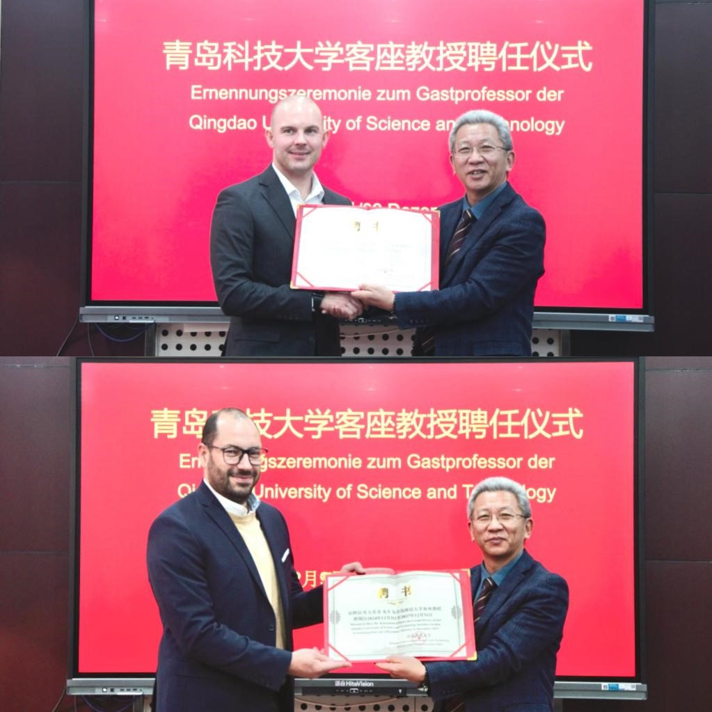 会谈结束后,经理岳学海为德国大陆马牌轮胎(中国)有限公司人力资源总监Alexis Gross、产品工业化部(PI)技术总监Konstantin Efimov颁发了bv伟德国际1946客座教授的聘书。