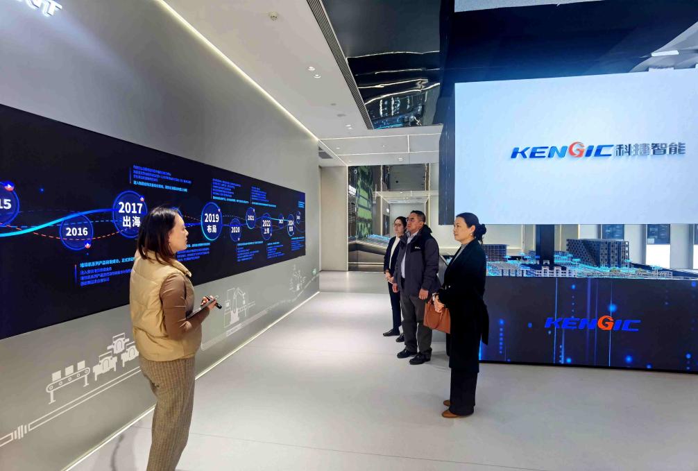 韩海青一行首先到青岛崂应创新科技有限公司进行调研。该公司负责人张建波详细介绍了企业发展历程、主营业务、生产规模及党建工作情况,并陪同参观国家人工智能与生态环保产业园。在科捷智能科技股份有限公司参观时,韩海青一行认真听取了工作人员关于企业文化的全面介绍,深入了解人才需求,并深入车间一线开展实地调研。最后,韩海青一行前往青岛高新区青年企业家协会,与协会员工企业举行座谈。韩海青代表公司向员工们致以关心与慰问,感谢他们长期以来对公司发展的大力支持。张建波代表青年企业家协会对公司到访表示欢迎。双方就深化校企合作、搭建人才培养与就业实践平台等事宜进行了深入交流。