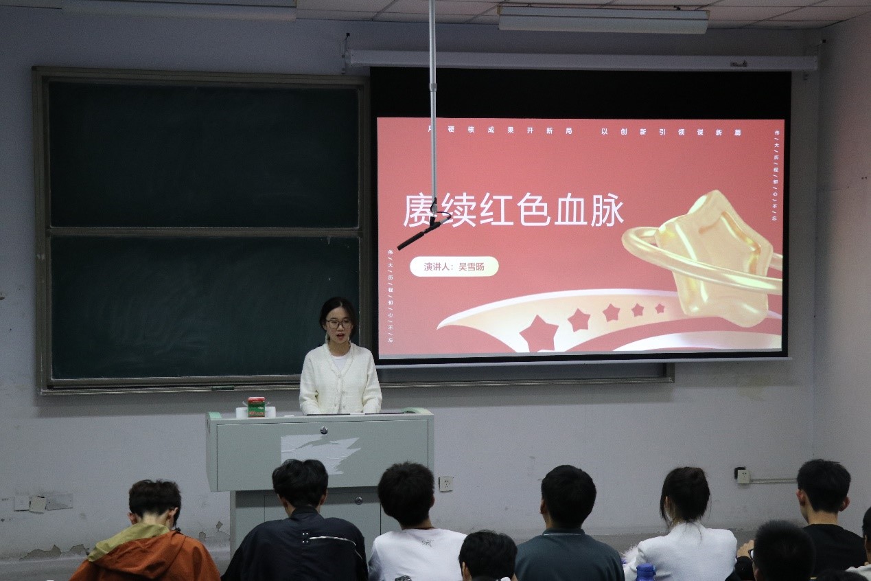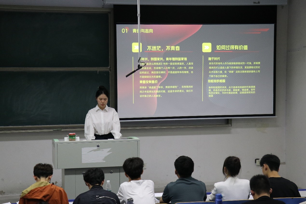 选手于子宸作为今年新退伍军人,讲述了自己在正青春的年纪,侧身奔赴军营的故事。现场,于子宸用抑扬顿挫的语调,饱含深情地作了题为《青春鸿鹄志,立马镇山河》的演讲,“祖国的强大,离不开军事的现代化、先进化,离不开国防的强大,我们要有能力保护自己的祖国和人民。”一句句铿锵有力的话语回荡在每位同学的心中。