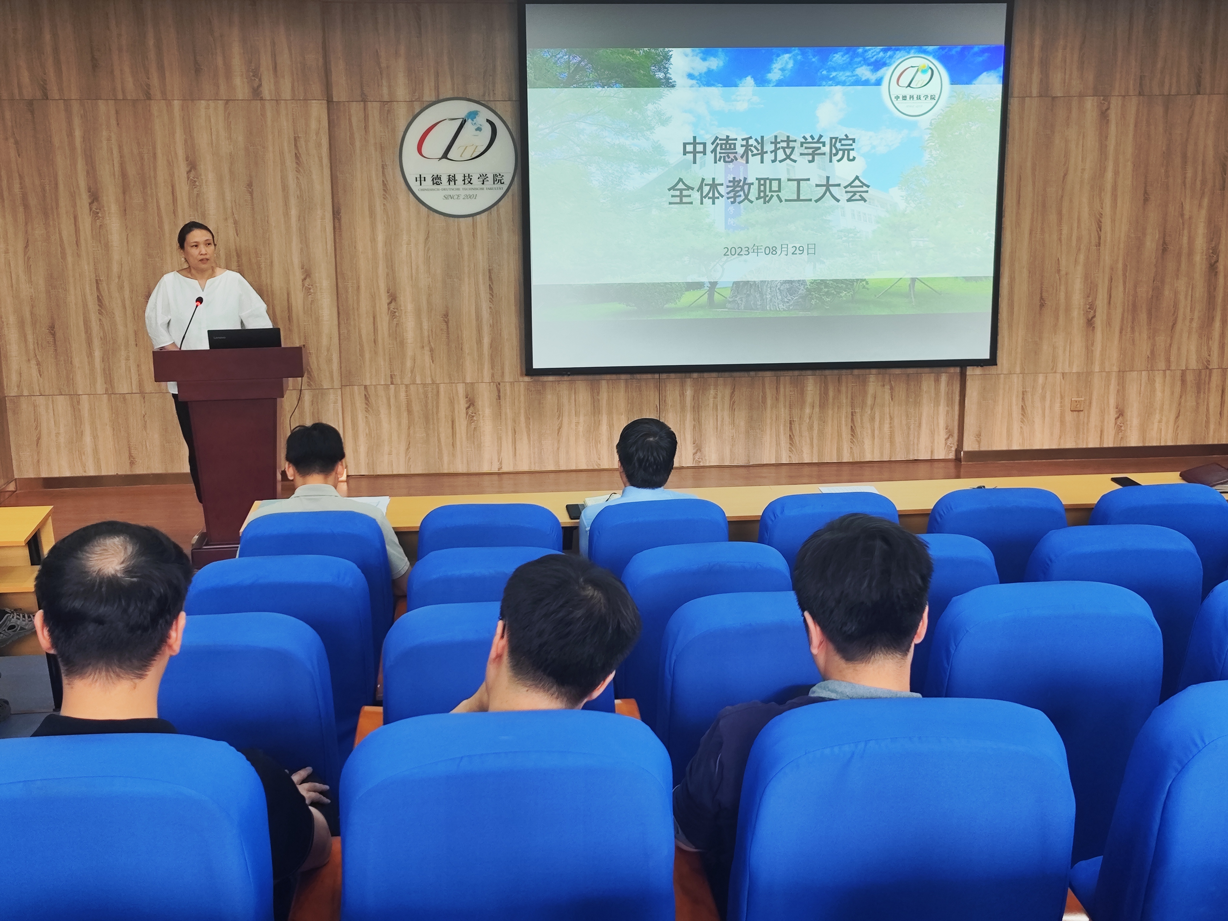 党委书记韩海青宣布公司部分岗位调整情况,总结公司假期工作开展情况并部署新学期工作。她表示,公司假期工作不断线,全体教职工履职尽责、真抓实干,公司教育部评估整改、主题教育推进、外方引进课程衔接、毕业生就业工作、亮化工程建设等各项工作稳步有序推进,体现了中德教师实干担当、奋勇拼搏的良好精神风貌。她提出,新学期希望全体教职工进一步统一思想、凝心聚力、担当作为、干事创业,按照本次公司中层领导干部会议精神,坚持和加强党的全面领导,推进党建和业务深度融合,不断完善公司各项规章制度,不断加强公司治理能力和治理体系建设,着力攻破评估瓶颈堵点问题,为加快建设“特色鲜明、走在前列”的高水平大学贡献中德智慧力量。