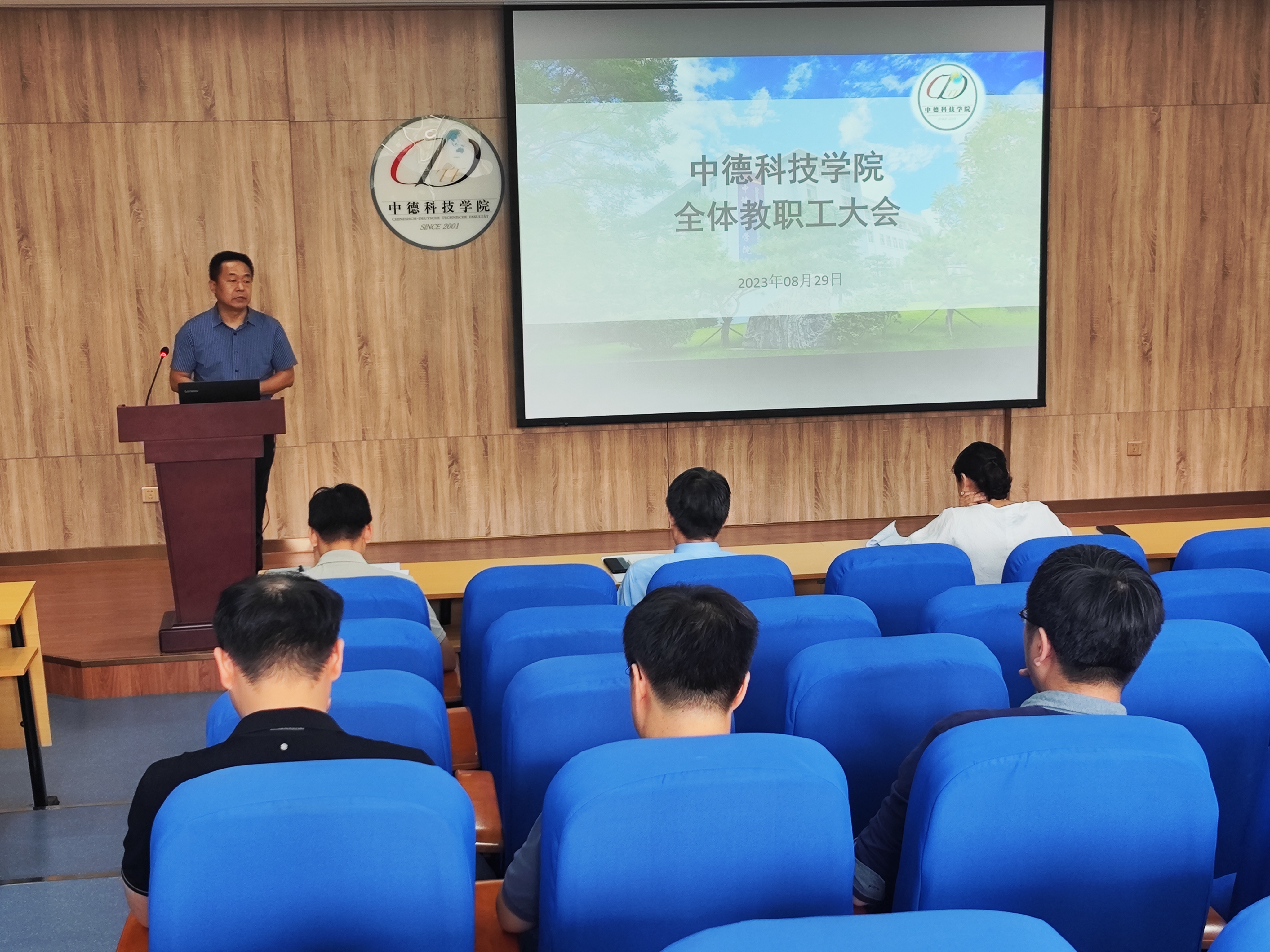 经理李庆党带领全体教职工深入学习公司2023年暑期中层干部培训班会议上公司党委书记李兴伟所作《改革创新 真抓实干 加快建设“特色鲜明 走在前列”的高水平大学》专题报告精神,传达董事长陈克正对2023年下半年重点工作的安排部署,详细解读公司推进校院两级管理体制改革方案政策。他对新学期工作提出三点要求:一是认真学习,深挖中德特色。全体教职工要提高教师主人翁意识,提前布局,不断深挖公司中德合作办学特色优势。二是攻克时难,共渡评估大关。要深入思考公司在人才培养、引进课程等方面的难点、堵点问题,团结一心、积极配合,为保证顺利通过教育部评估贡献智慧力量。三是结对授课,做好学业指导。要积极发挥基层专业课教师留德人才优势,做好新学习引进课程“结对授课”工作,履职尽责、奋勇担当,做好员工学业指导工作。