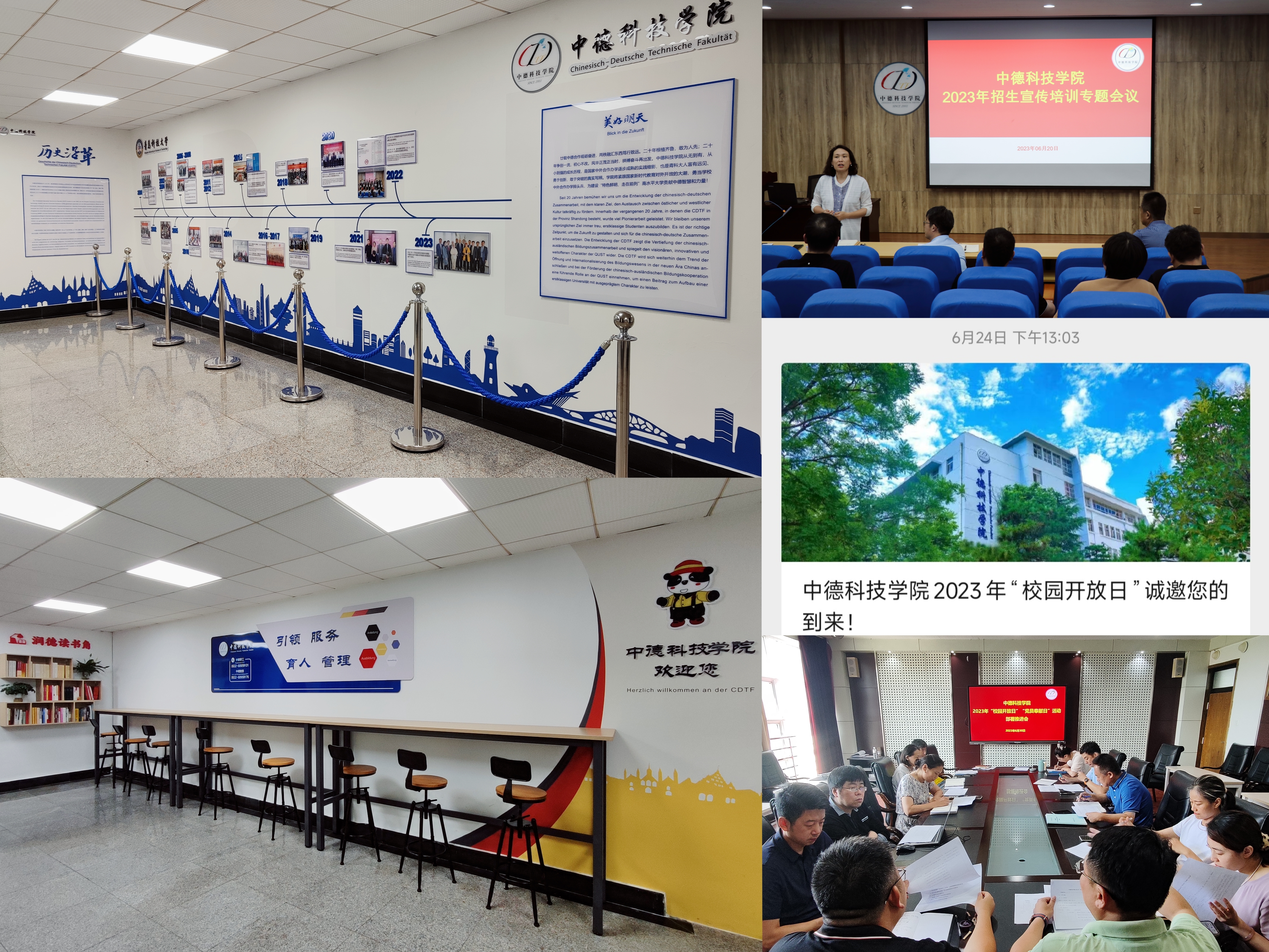 积极筹备,广泛动员。公司高度重视2023年招生宣传工作,通过召开“校园开放日”部署推进会、招生宣传培训专题会、员工志愿者培训会等多次会议,为迎接考生及家长的到来做好充分准备。通过公司招生信息网站、公司官方网站、公众号、朋友圈等自媒体账号,广泛宣传公司“校园发放日”活动,得到了考生及家长的踊跃报名。公司认真梳理22年中德合作办学发展历程,更新公司楼宇文化墙建设,为师生展现国际化办学人文环境氛围。