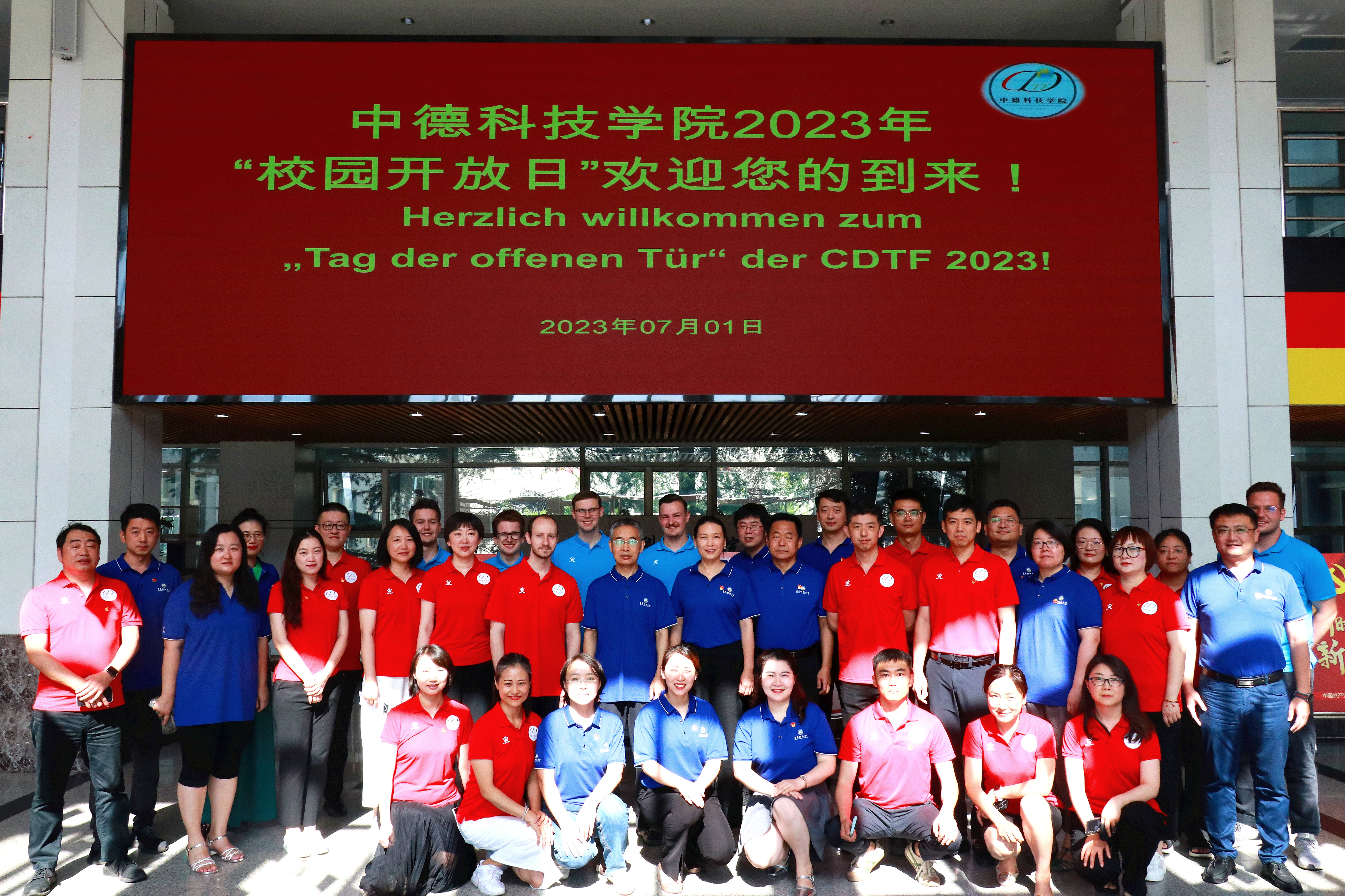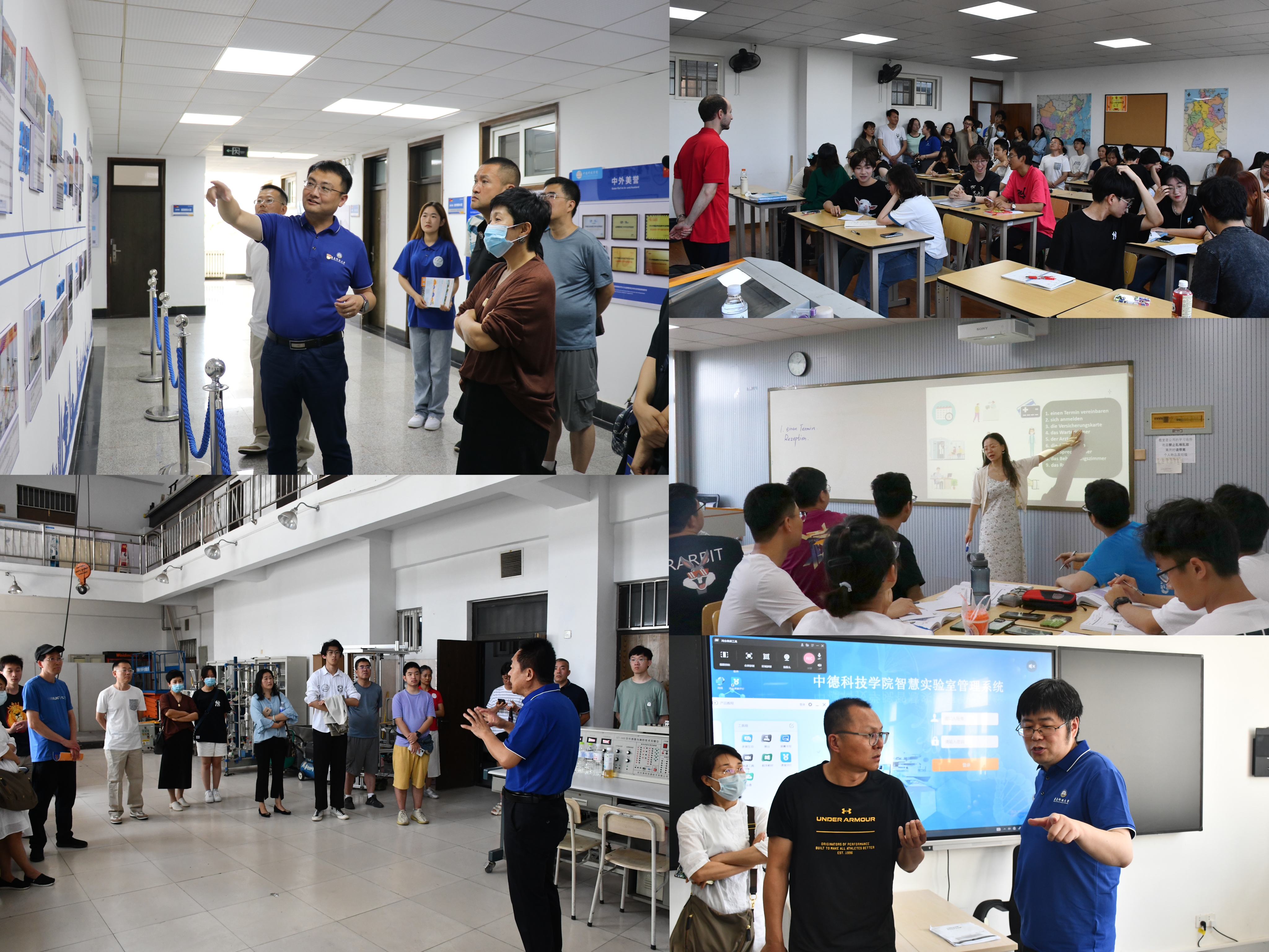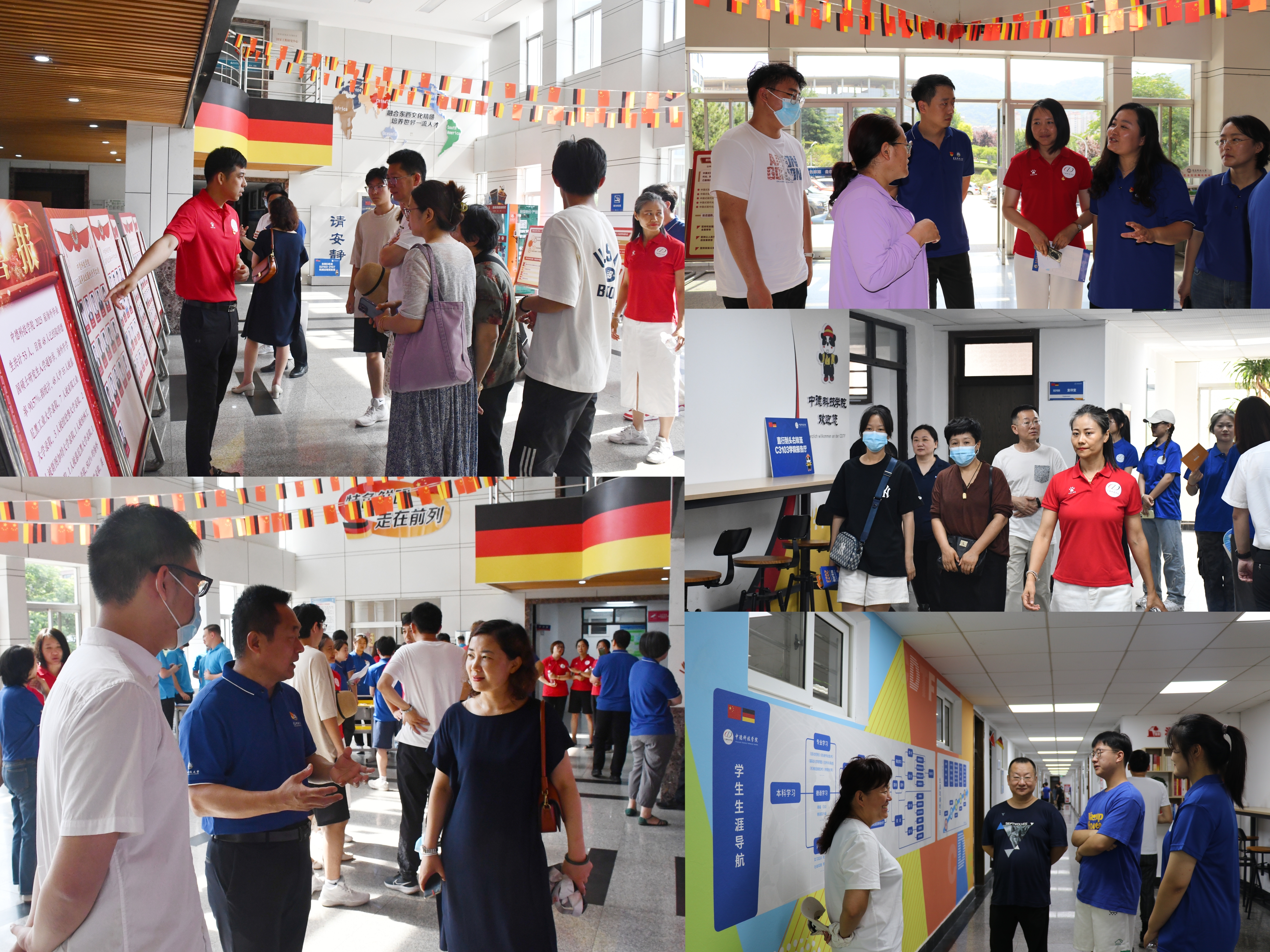 党员奉献,中德携手。为庆祝中国共产党成立102周年,以实际行动向党的生日献礼,公司党政领导、师生党员、员工志愿者、德国外教及德国职工携手助力“校园开放日”咨询活动。公司党员教师通过文化墙图文生动讲述公司发展历程,员工志愿者带领考生及家长实地参观公司智慧实验室、智慧教室、德语资料室等办学场地,公司中外教“德语公开课”让考生们提前体验公司小班制德语教学的特色模式。通过实地参观,感受公司良好的中德合作办学氛围,体验大美校园。