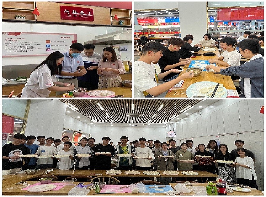 “聚‘饺’祖国华诞,再谱盛世华章。10月1日上午,公司在北苑餐厅妈妈厨房开展了“聚‘饺’祖国华诞,再谱盛世华章”欢度国庆活动。师生齐聚一堂,同包饺子,共话温情,让员工在校感受到家的温暖。党委副书记马骥勉励同学们用奋斗成就精彩人生,共祝伟大祖国繁荣昌盛。同学们吃着饺子、谈着梦想、话着祝福,缓解思乡之情,增强了员工对公司的认同感、归属感和自豪感。