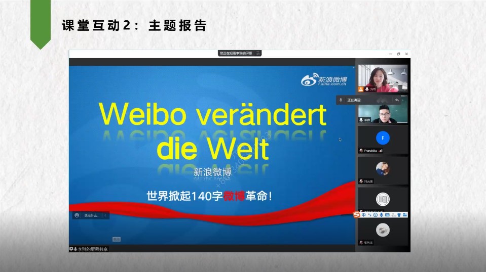 公司六名教师代表也针对前期线上教学工作进行了总结和汇报。徐爱真老师作为德语中心主任肩负着对德语课程进行总体部署的任务,尤其是对未经历过上次疫情线上教学过程的新进老师进行了培训和指导;吴鹏老师总结了线上教学中发现的问题,比如因员工个人差异课前预习效果参差不齐,深层问题的探讨达不到预期等等;高燕燕老师关注了线上教学的难点,如员工出勤、课堂互动和网络流畅度等问题;祝方舟老师介绍了如何利用雨课堂完成板书讲解等内容;李晓婷老师利用了多种教学平台整合丰富的线上教学资源服务于教学,灵活运用雨课堂、钉钉、Kahoot等平台不同的功能实现了课堂教学的创新性、互动性、趣味性;曲之超老师以《材料力学》为例,介绍了利用中国大学慕课等线上教学资源辅助教学的案例。