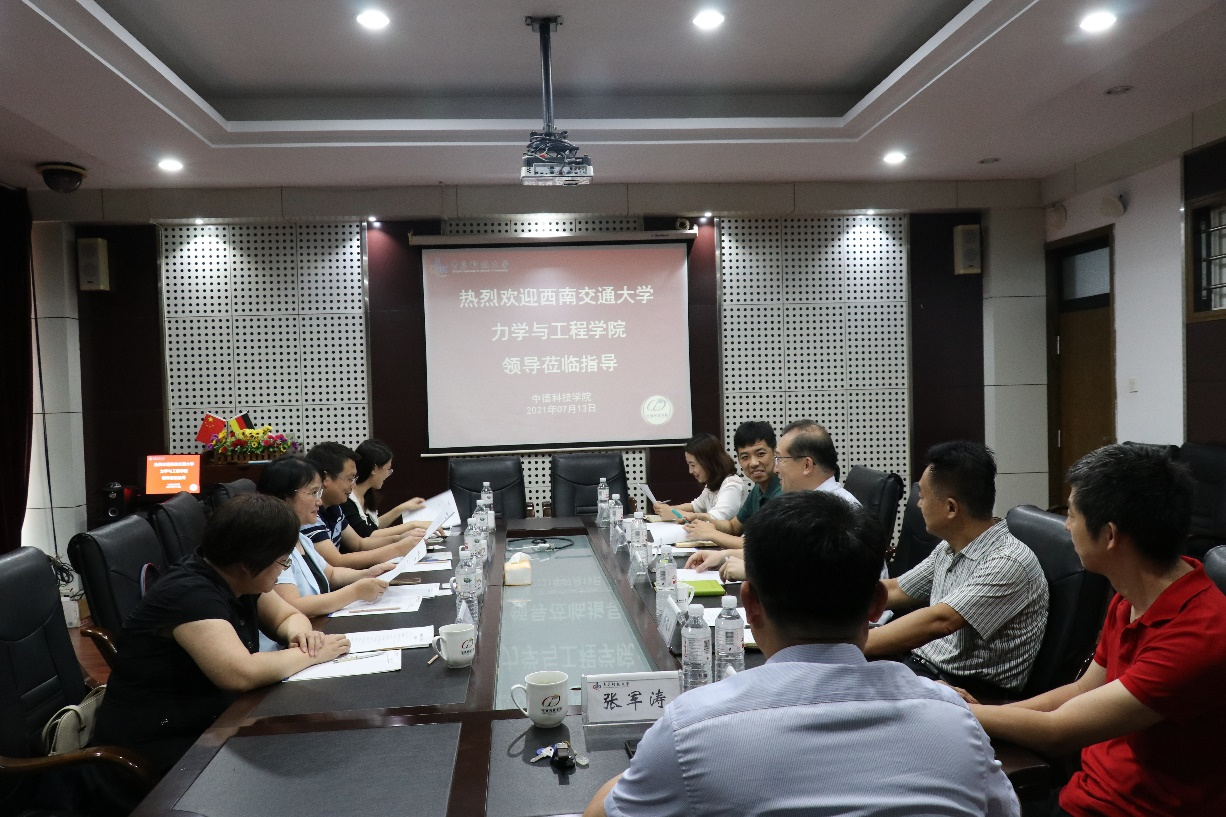 7月13日上午,西南交通大学力学与工程公司党委书记栗民、副经理李翔宇、工程力学系主任张娟、专职辅导员张容华一行4人来公司考察调研中德合作办学发展情况及管理模式。伟德国际VICTOR1946领导班子及相关部门代表老师参加交流研讨会,会议由任允晓书记主持。
