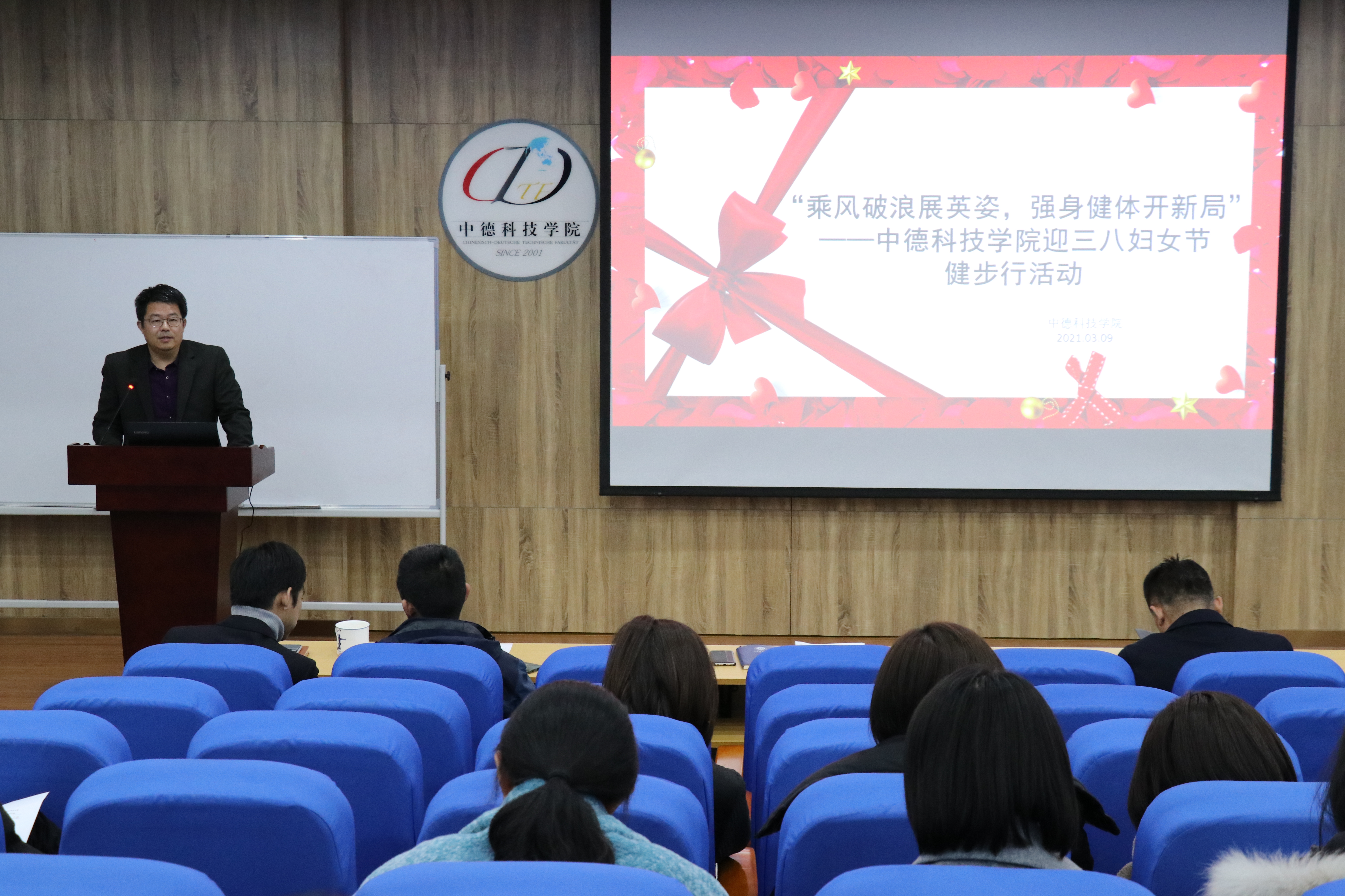 经理李庆党向公司全体女教师致以节日问候,他表示,2020年在抗击新冠肺炎疫情中,公司女教师积极开展线上教学工作,保证了教学工作的顺利开展;管理岗女职工不惧风险、逆向而行,用不同的方式为疫情常态化下的教学、员工管理、科研工作做出突出贡献。他强调,2021年是“十四五”开局之年,是中国共产党成立100周年,是公司合作办学高质量发展20周年,希望广大女教师继续保持“滚石上山、去不留行”的工作作风和干劲,凝聚巾帼力量、彰显巾帼风采,与新时代同行、为新目标奋斗、在新征程建功,以锐意进取的工作热情、爱岗敬业的奉献精神、健康良好的身体素质及精神风貌全面投身于公司中心发展的各项工作,用智慧的双手书写多彩人生。