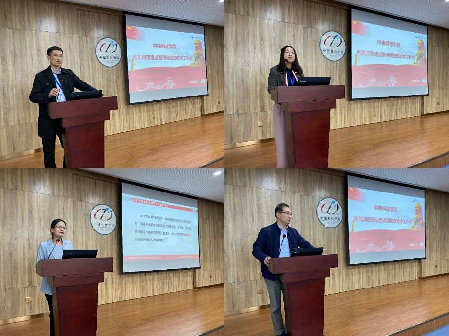 宣传部副部长李鲲鹏向全院全体教职工介绍了公司开展第十八届师德师风建设月的整体情况,他强调教师要统一思想,认清形势,进一步增强责任感和使命感,营造一个风正气清的教育环境。希望公司教师转变授课方式方法,为课程思政注入“灵魂”,为课堂教学增加“活力”,从而达到真正的课堂效果。外语公司刘艳艳老师以自己参加各级各类教学竞赛为实例,交流了自己对外语公司产品理念的思考及课堂教学技巧方法。教务处教师教学发展中心副主任段晓蕾向与会人员通报了bv伟德国际1946课程思政建设的总体情况,详细介绍了课程思政教育改革现状及下一步改进措施,欢迎公司教师积极参加后期由教务处教发中心举办的课程思政创意设计工作坊,提升课程思政研究实践水平。机电公司力学教研室教师朱惠华以《课程思政在材料力学课程教学中的探索与实践》为主题做了课程思政教学经验分享,从基于课程思政的材料力学教学理念及课程思政与课堂教学的全面融合两个方面进行了教学风采展示。