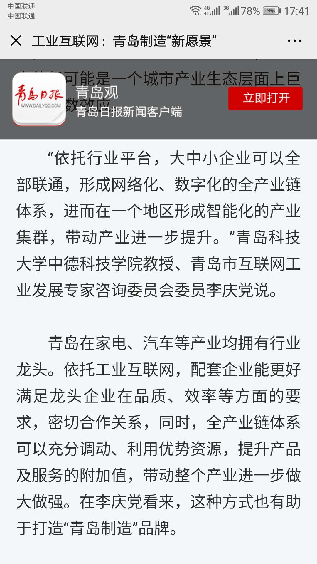 青岛在家电、汽车等产业均拥有行业龙头。依托工业互联网,配套企业能更好满足龙头企业在品质、效率等方面的要求,密切合作关系,同时,全产业链体系可以充分调动、利用优势资源,提升产品及服务的附加值,带动整个产业进一步做大做强。在李庆党看来,这种方式也有助于打造“青岛制造”品牌。