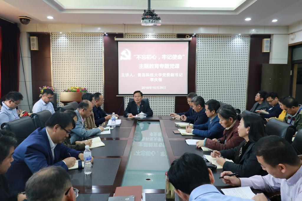 10月29日下午,党委副书记李庆领以《不忘初心、牢记使命、担当作为,努力办好人民满意的教育》为题,为党委统战部、工会、妇女委员会、国际交流与合作处、留学人员服务中心、伟德国际VICTOR1946、国际公司、中德工程公司、泰中国际橡胶公司、中德技术公司党员讲授“不忘初心、牢记使命”主题教育专题党课。党委统战部部长陈洪宗主持党课。