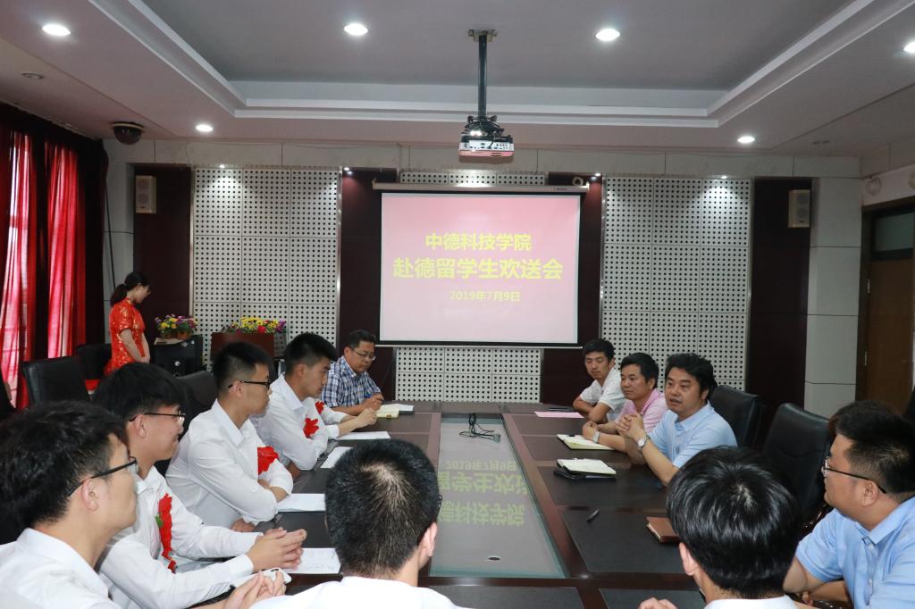 7月9日下午,伟德国际VICTOR1946在公司会议室举行应用化学专业出国员工欢送会,伟德国际VICTOR1946经理李镇江、党总支书记王江忠、党总支副书记王永波,应用化学专业负责人杨子江,教学部、外事部老师以及2016级出国员工参加了欢送会。