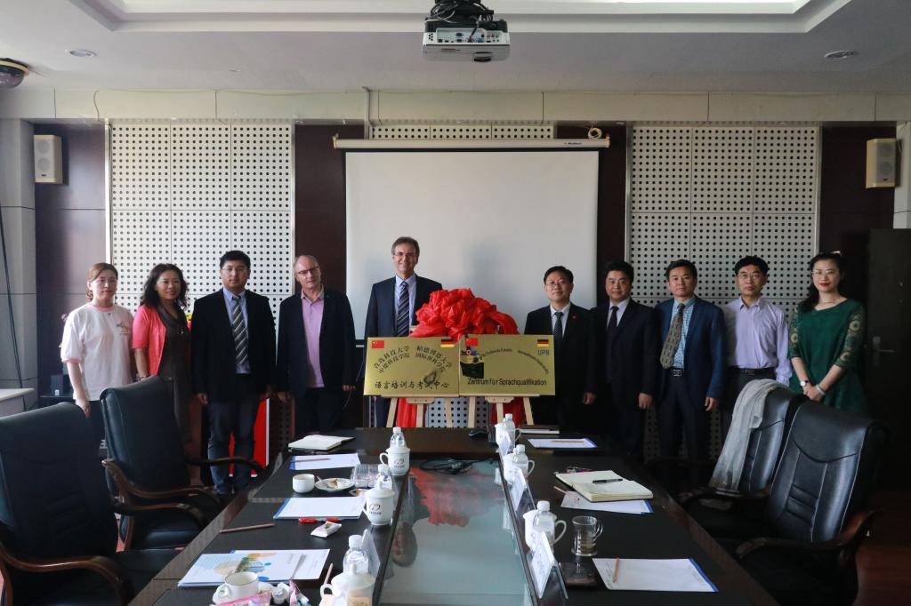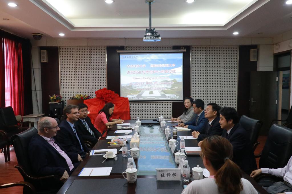 李庆领对迈尔一行到访表示热烈欢迎,回顾了两校间近20年合作所取得的成就,表示德国与中国关系合作愈加紧密,教育部已把德语纳入高考考试范围,希望“语言培训与考试中心”充分发挥双方优势,提高语言教学质量,为有志于学习德语的优秀学子提供良好的培训与考试平台,促进中德两国在教育、科技、文化等领域的交流合作。