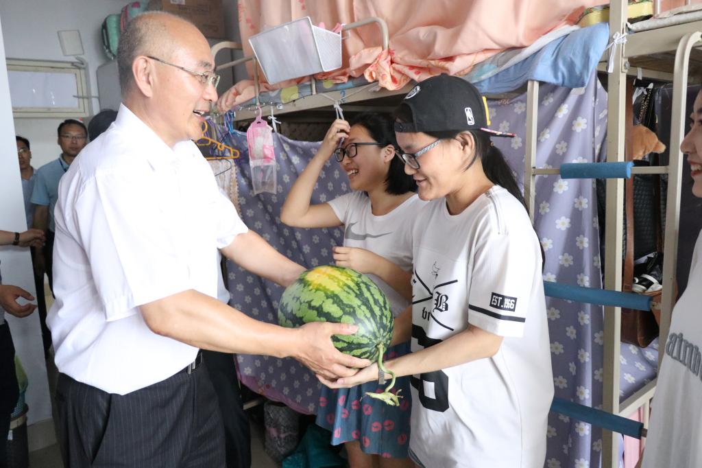 陈克正、李伟年一行先后来到崂山校区南区9号楼部分毕业生宿舍,为毕业生送去西瓜,亲切地与毕业生进行交谈,仔细询问他们的毕业去向、离校前准备情况。公司2018届毕业生同学热情邀请领导走访自己的宿舍,主动向领导汇报自己四年来取得的成绩,对公司公司领导的关心表示感谢,并表达了对母校的美好祝愿。