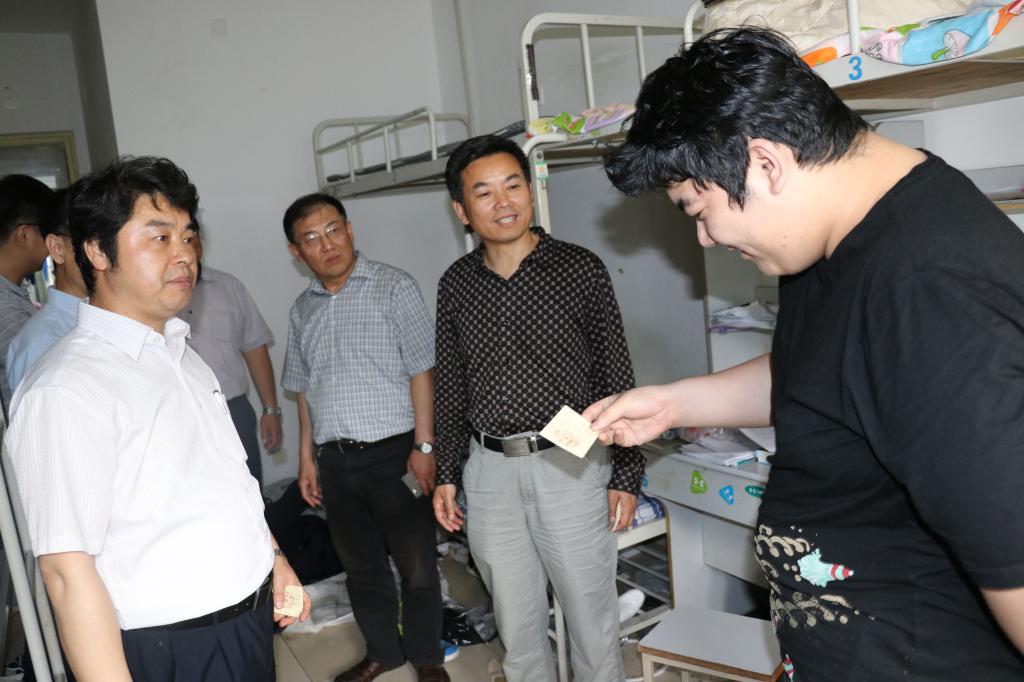 6月26日下午,经理李镇江、党总支书记王江忠、副经理薄建全、副经理刘中冬、党总支副书记王永波到崂山校区南区9号楼、10号楼看望了即将远行的公司2018届毕业生,为正在准备行囊、踏上新征程的毕业生送上亲切的问候和温馨的祝福。“出国读研去哪所公司?”“工作签哪了?”“行李都收拾好了吗?” ……师生进行了亲切交谈。公司领导详细询问了毕业生的就业情况、近期生活情况以及将来的人生规划。公司领导们嘱咐同学们要争做文明离校的楷模,自觉维护校园秩序,带着感恩之心辞别师长、告别母校,踏上新的人生征程,希望同学们在今后的岗位上能够时刻关注公司的发展,常回来看看。