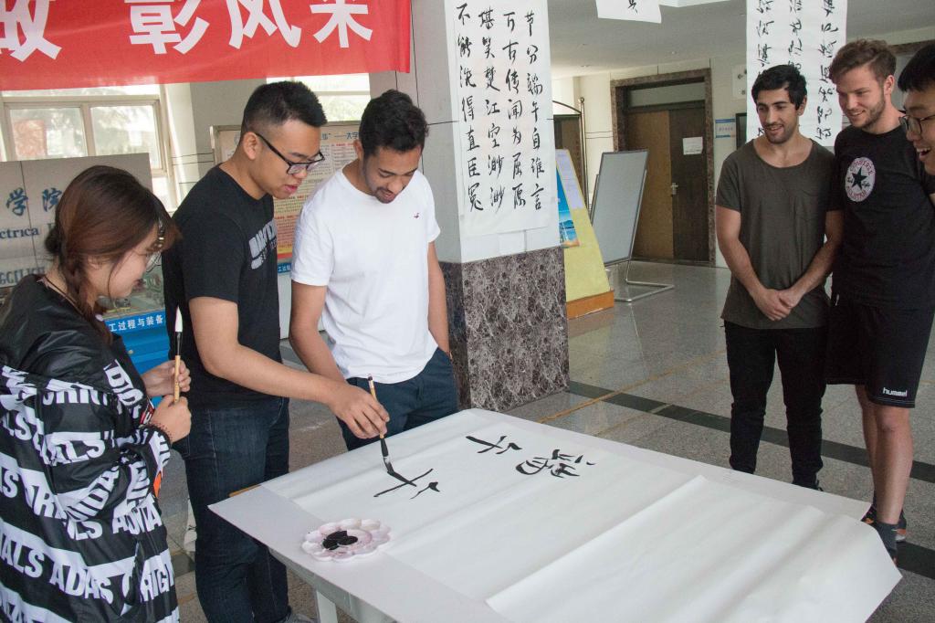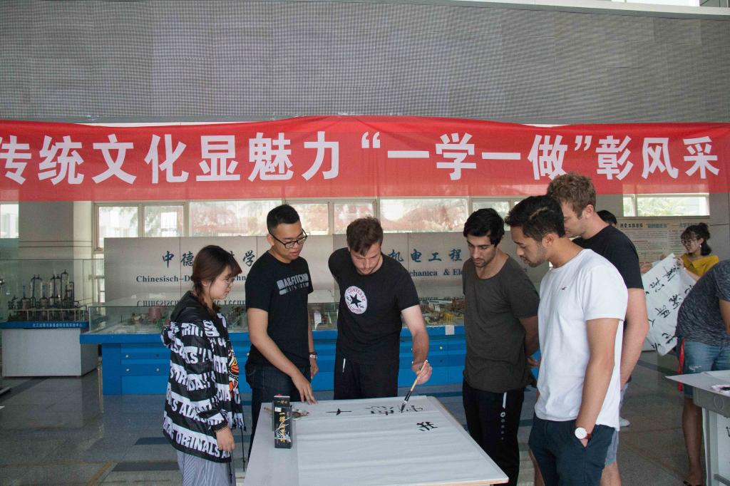 公司员工带领德国职工练习了中国书法,Freidrik、Ali、Moritz...等职工表示对中国书法有很大兴趣,纷纷拿起毛笔学写“端午、中德”等汉字,并用毛笔写下自己的名字。