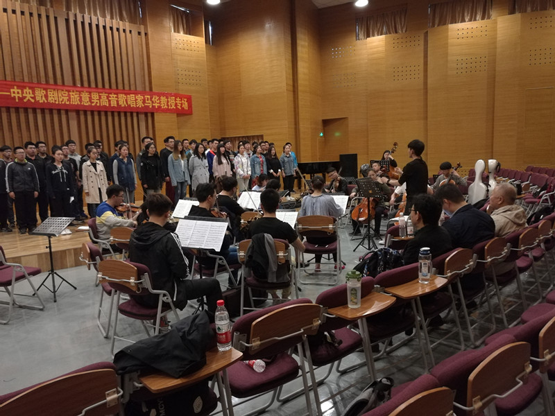 在马华教授的悉心指导下,合唱效果有了很大提升,同学们沉浸在了音乐中,热情的马华教授兴致所至打起了节拍,与演唱的同学们感情合一,并带领同学们体会歌曲的内涵。他强调:艺术有艺术的形式,艺术有艺术的手段,艺术与现实会不断碰撞出最热烈的火花。马华教授生动的讲解不仅指出了合唱团目前演唱的不足之处,更是升华了同学们对于艺术的思考与理解。