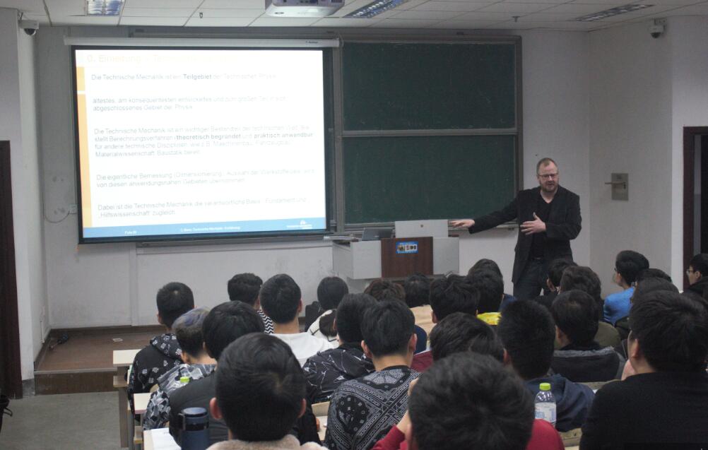 本学期,德国伊尔梅瑙工业大学Behn教授、Klung女士和Ganschor女士来到伟德国际VICTOR1946授课。Behn教授为2015级机械专业员工讲授理论力学提高强化课,为期两周,并进行了考试。同学们普遍反映,德国教授授课方式新颖独特,融会贯通,讲授透彻,同学们收益很大。该课程要求同学们有较好的德语基础和扎实的专业基础,尤其是需要掌握较强的德语实际运用能力。