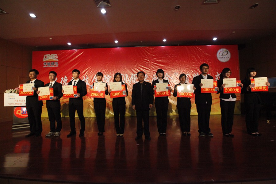 2014年度“QME奖励金”共评选出优秀员工20名,优秀员工干部5名,优秀教师3名。 李庆领、马小维等分别为获得“QME”优秀员工奖学金、“QME”优秀员工干部奖学金、“QME”优秀教师奖获得者颁发了证书和奖品。