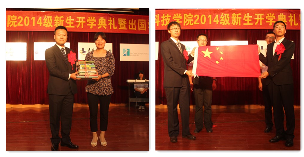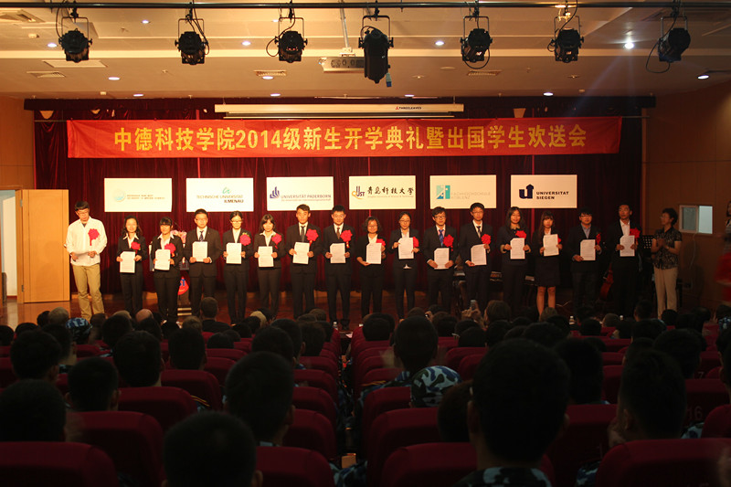 9月12日下午,中德公司2014年新生入学典礼暨出国员工欢送会在崂山校区第三报告厅举行。bv伟德国际1946副董事长张淑华教授、德国锡根大学Ehrhardt教授、德国帕德博恩大学Lessmeier博士、bv伟德国际1946统战部部长陈洪宗、后勤处处长刘天真、教务处副处长曲建英、员工处副处长秦娇、组织部副部长朱敬义、校团委副书记刘跃宁、中德公司经理王守城、党总支书记李镇江、副经理薄建全、党总支副书记徐立勋及中德公司部分老师参加了会议。会议由党总支书记李镇江主持。