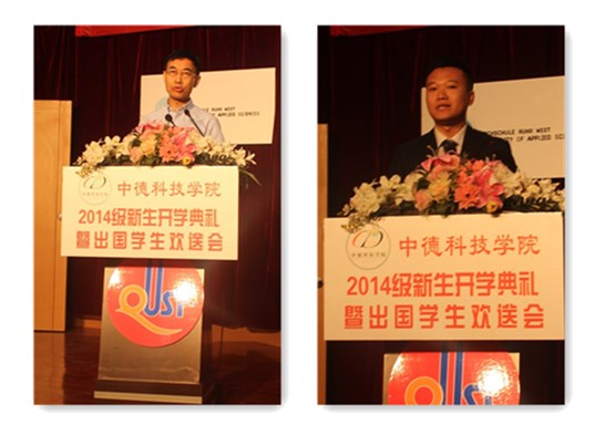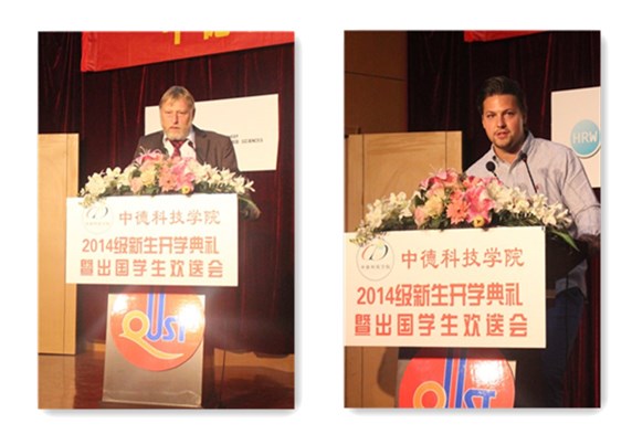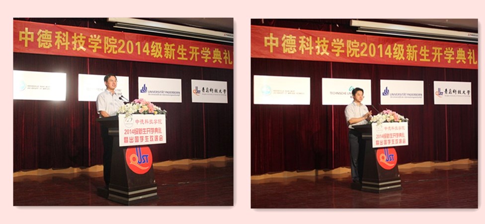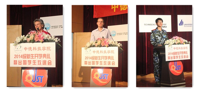 德国锡根大学Ehrhardt教授、德国帕德博恩大学Lessmeier博士、教师代表高梦雅、德国研究生新生代表Tobias Hirschter、2014级新生代表齐汉正分别做了发言。