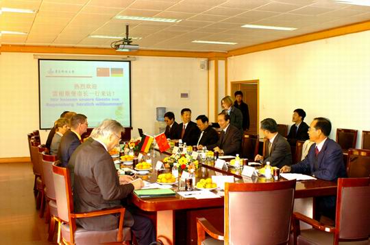 晚上,双方在香格里拉大酒店举行了两市经贸、教育,文化等领域合作签字仪式,董事长马连湘出席了签字仪式,并代表公司与雷根斯堡应用技术大学董事长约瑟夫.埃克斯坦(Prof. Josef Eckstein)教授签署了加强合作的友好合作协议。马连湘表示将全力推动两校间的交流与合作工作迈上新台阶。