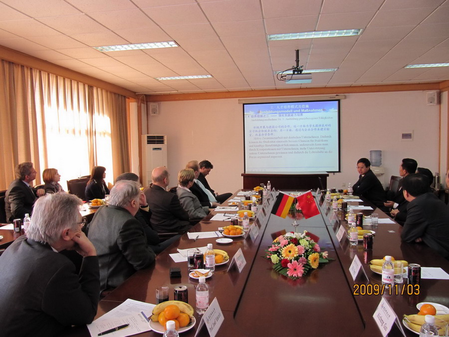 11月3日,德国巴伐利亚州雷根斯堡应用技术大学董事长埃克施泰因教授随雷根斯堡市市长沙伊丁格先生率领的代表团访问了伟德国际VICTOR1946。