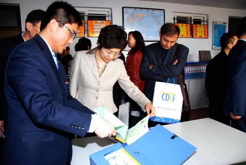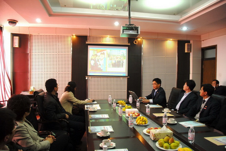 经理王守城、党总支书记郭曰铎对郑思洁部长一行的到来表示热烈的欢迎并介绍了中德公司的基本情况。分团委书记李春家向考察组做了题为《探索中外合作办学形势下共青团工作新机制,培养青年员工跨文化交流能力》的国际化团建工作汇报。在听取了情况介绍和工作汇报后,考察组仔细查看了公司国际化团建工作的工作资料。围绕如何在国际化办学形势下开展共青团工作这一主题,考察组各位成员同公司领导、老师进行了深入交流。