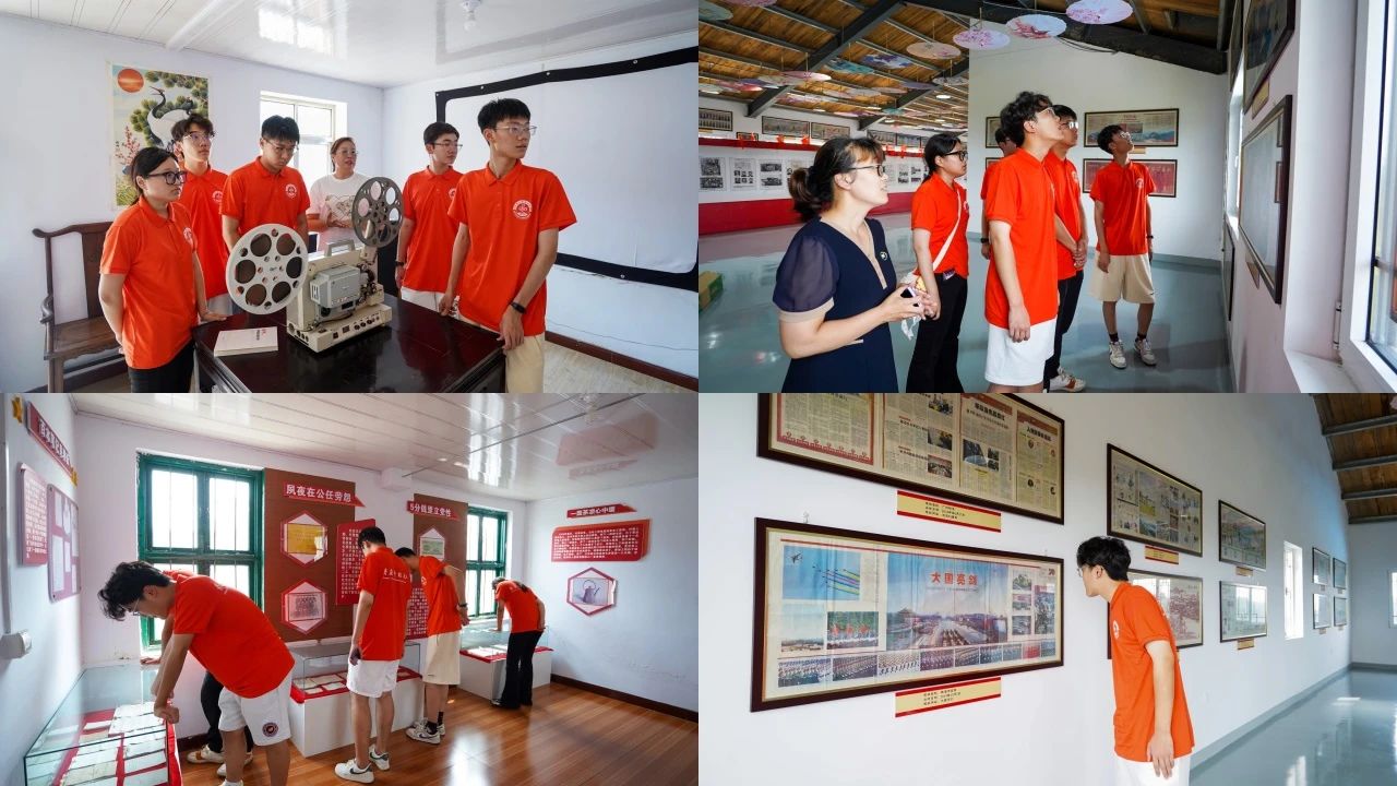 走进徐村社区综合服务中心,斑驳如墨的墙面沉淀着徐村党建工作的开展,青砖和瓦砾,在阳光的照射下,大楼与错水河相映生辉。徐村社区服务中心兼具多种功能于一体,设有党群服务中心、便民服务大厅、乡村记忆馆等,承载解决村民政务生活的重要职能,也是进行各种党建生活的重要场所。团队从徐村村委成员杨美娟那里了解到:徐村新村确立了”一家人、一条心、一件事、一起拼、一起赢”的理念。在新村融合发展试点工作中,徐村党委提前谋划,把盘活网格村资源与壮大村集体经济有机融合,让发展的成果惠及父老乡亲。在社区综合服务中心五楼报馆,包含各种主题的八连版连体报让调研团叹为观止。让队员们最为震撼的是一列由每一期记录党代会的报纸所组成的书墙,墙上记载着从中共一大到中共二十大跨越百年的会议历程,带领队员们回顾了党的百年发展史,也让队员们受到了一次难得的党史教育。