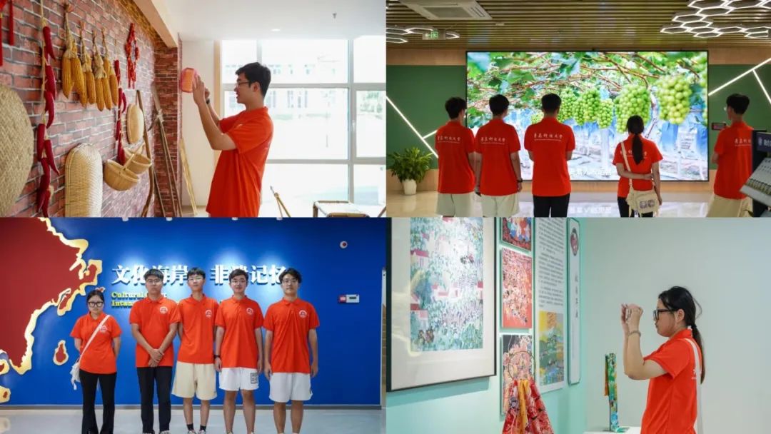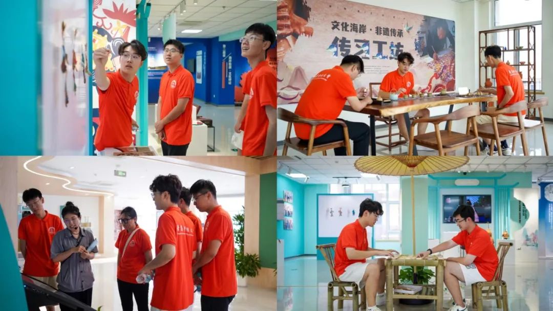 一个个海的传说,仿佛诉说着几千年的历史;一件件精美的手造文创,仿佛讲述着今天的故事......来到三楼,实践队员们对非遗体验中心的非遗文化和文创产品兴趣十足。据介绍,目前西海岸新区共有各级非物质文化遗产86项,其中国家级3项,省级7项,市级11项。队员们在了解非遗文化的同时也亲自体验了钩编、冶陶手工技艺、茶艺等项目。最后,大家纷纷在文创墙前合影留念。