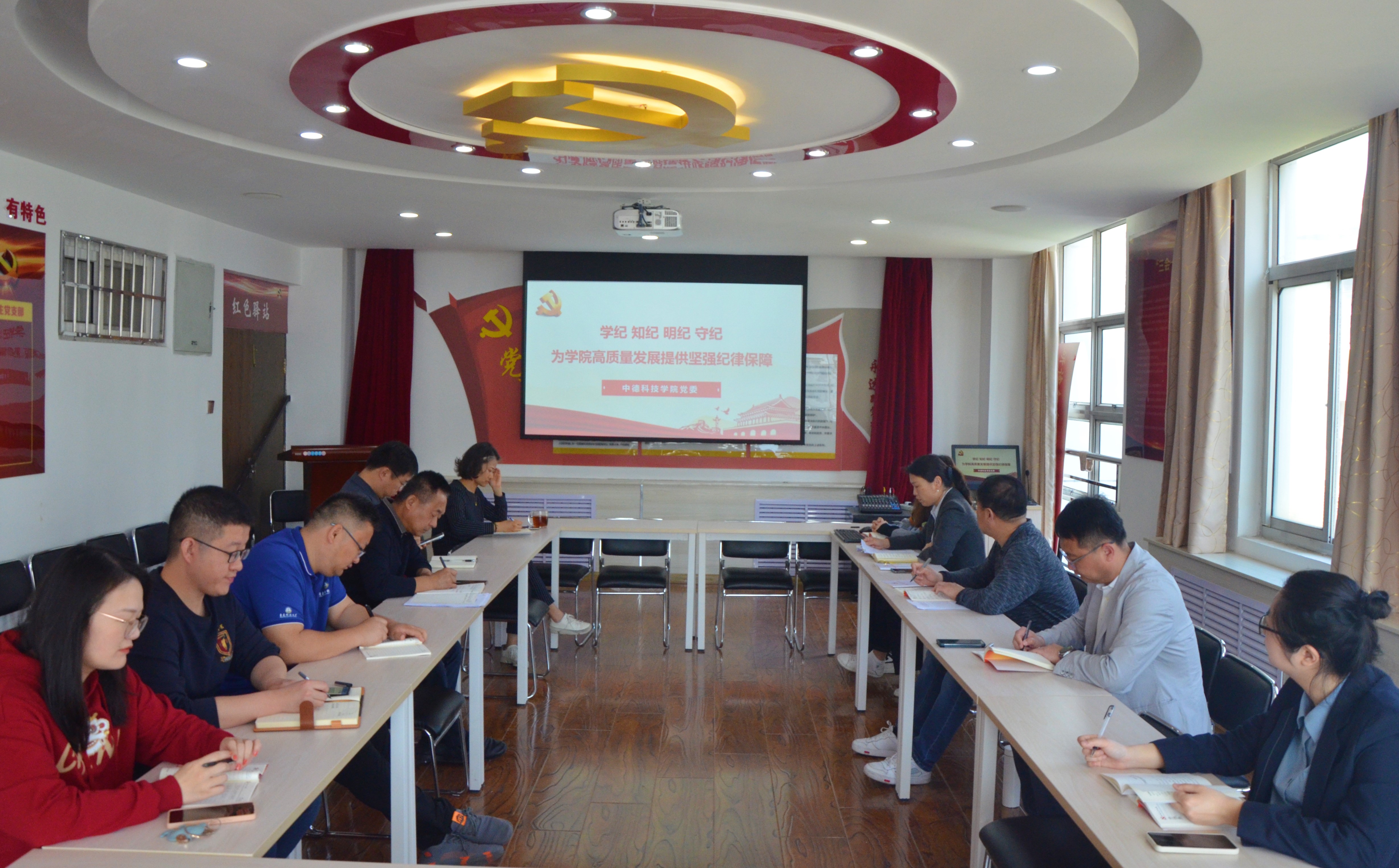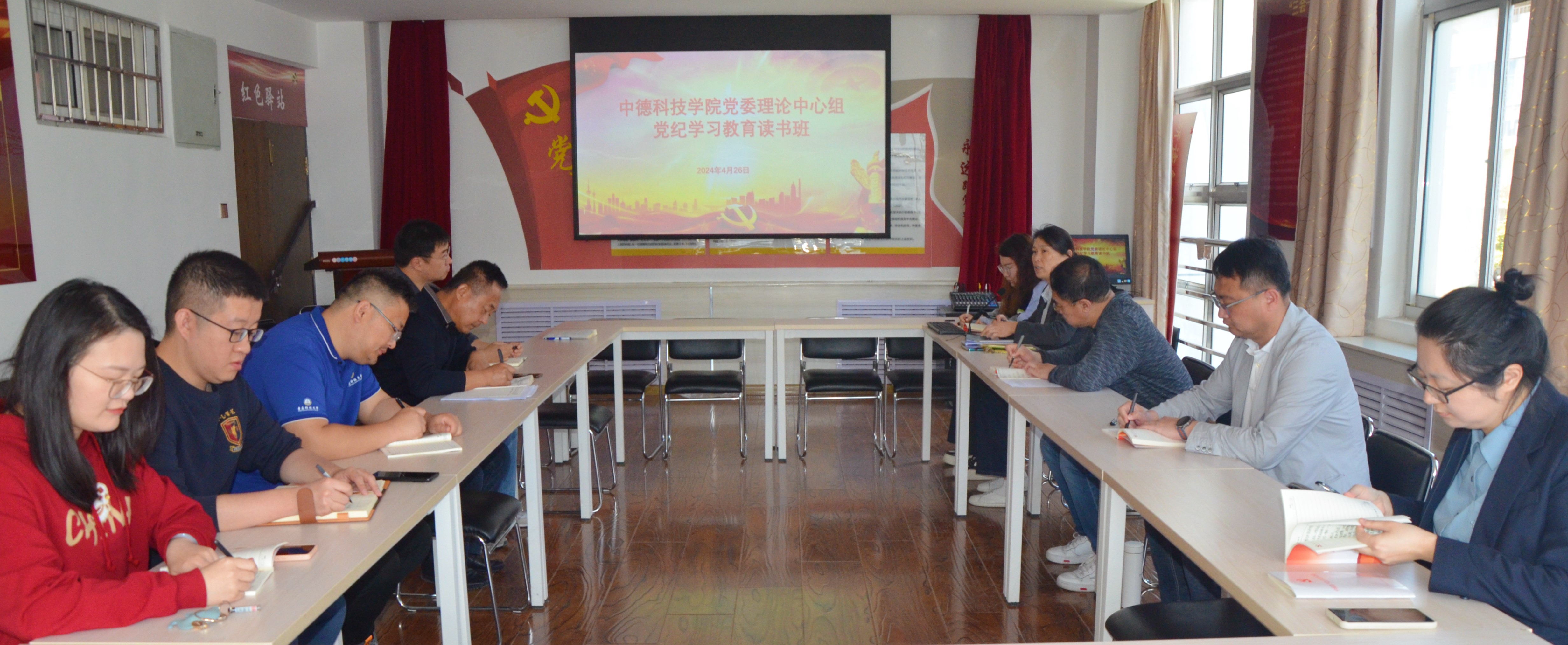 4月26日上午,中德科技公司党委理论中心组在公司党建活动室A5101开展党纪学习教育读书班活动,公司党委书记韩海青主持学习活动。