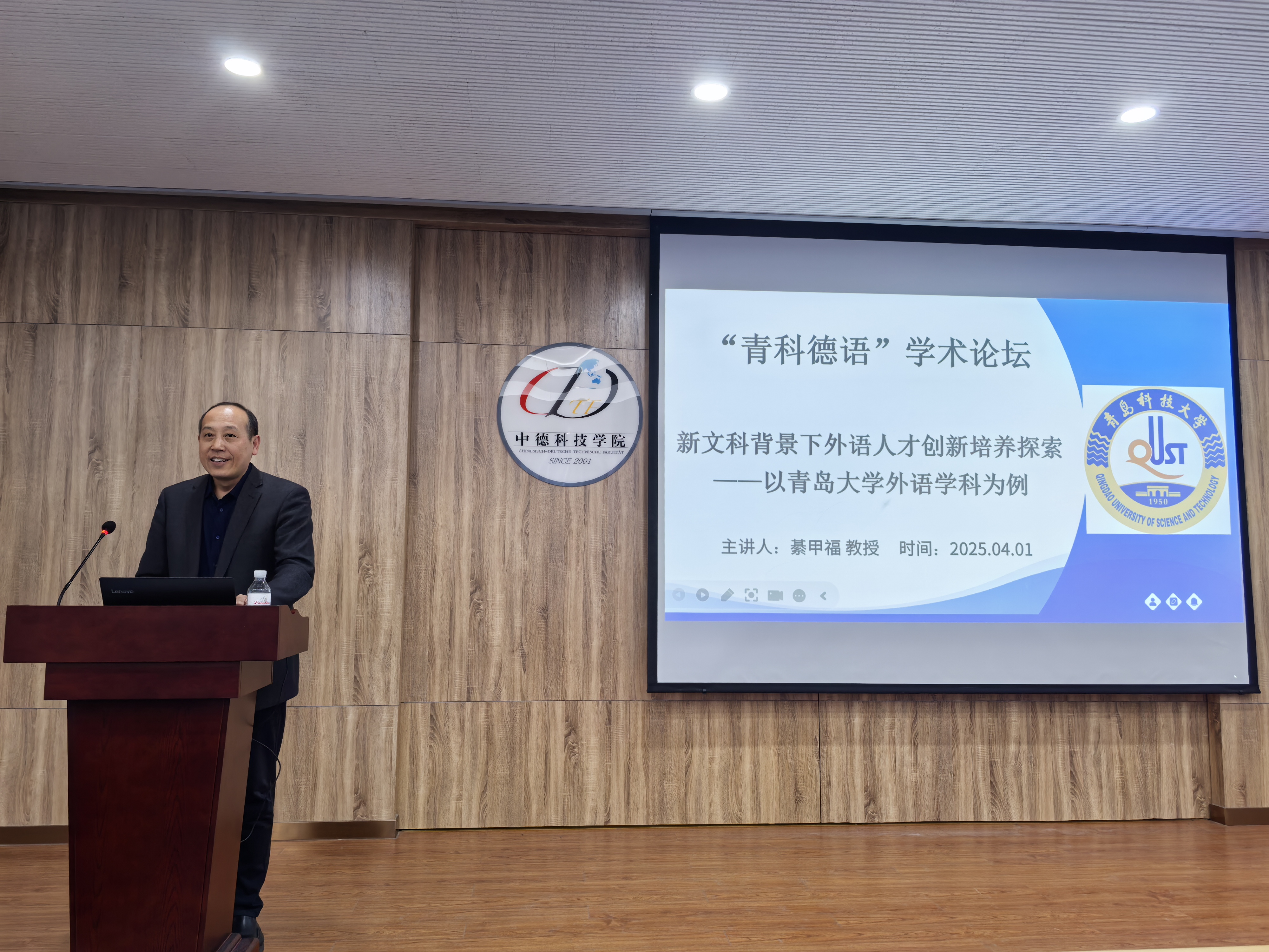 4月1日下午,由外国语公司、伟德国际VICTOR1946、中德工程公司联合主办的“青科德语”学术论坛第二讲在崂山校区举办。教育部外语教学指导委员会德语分委员会委员、青岛大学外语公司德语系主任綦甲福教授应邀作《新文科背景下外语人才创新培养探索》主题报告。