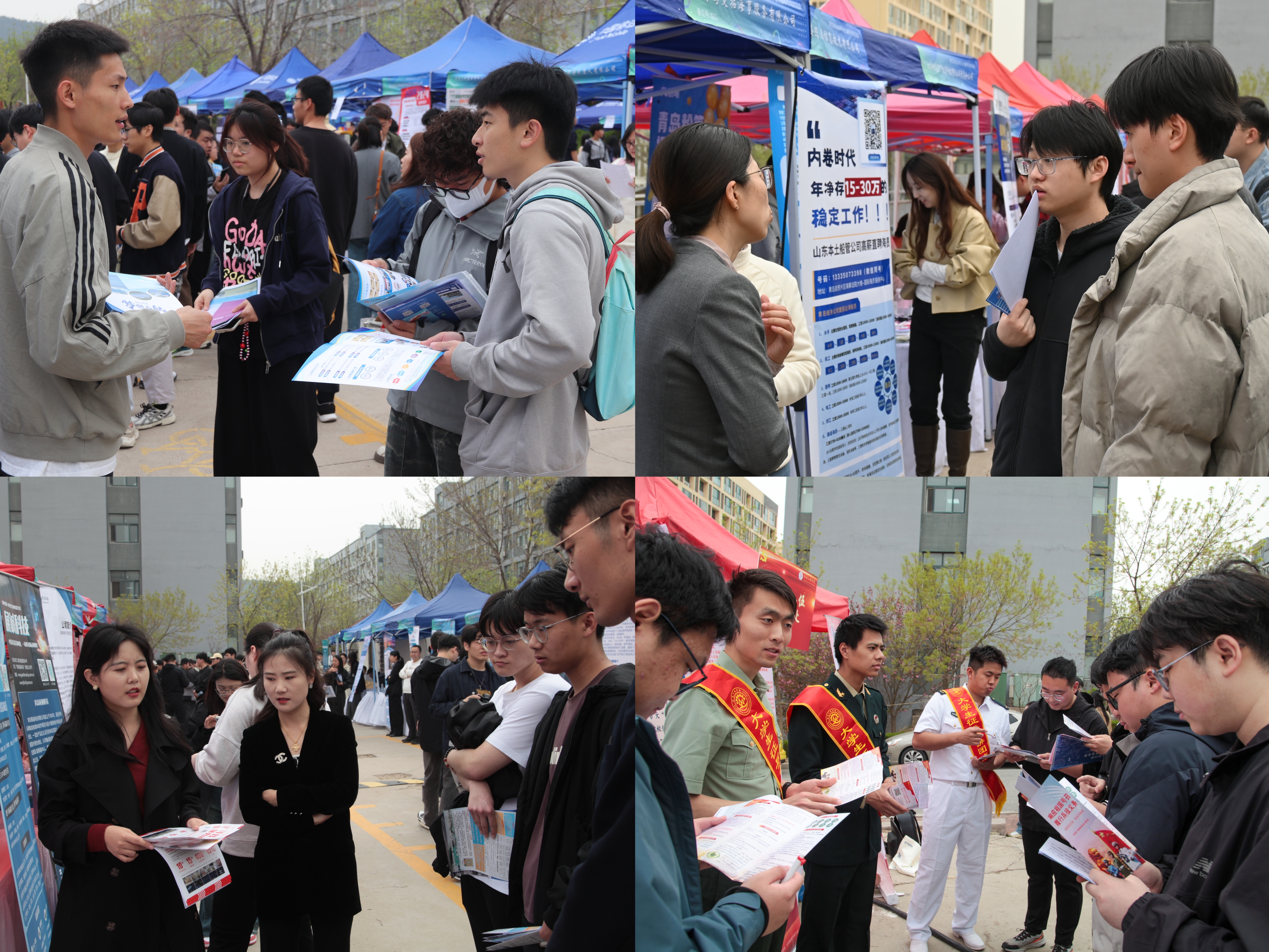 双选会紧扣“靶向新工科就业需求”主题,吸引百余家用人单位参会,累计投放1700余个就业岗位。参会单位涵盖国有企业、民营企业、事业单位等多种类型,其中赛轮集团、英科医疗、山东朗进科技等上市企业占比近50%。所提供的招聘岗位覆盖智能制造、机械制造、电气自动化、软件和信息技术服务、教育文化等多个行业领域,以丰富的岗位资源推动供需高效对接,为校区新工科专业背景同学提供多样化、高质量的就业、实习岗位。双选会现场气氛热烈,1500余名员工携带简历到场参会,不少企业展位前甚至“排起长龙”,员工积极与企业代表交流。